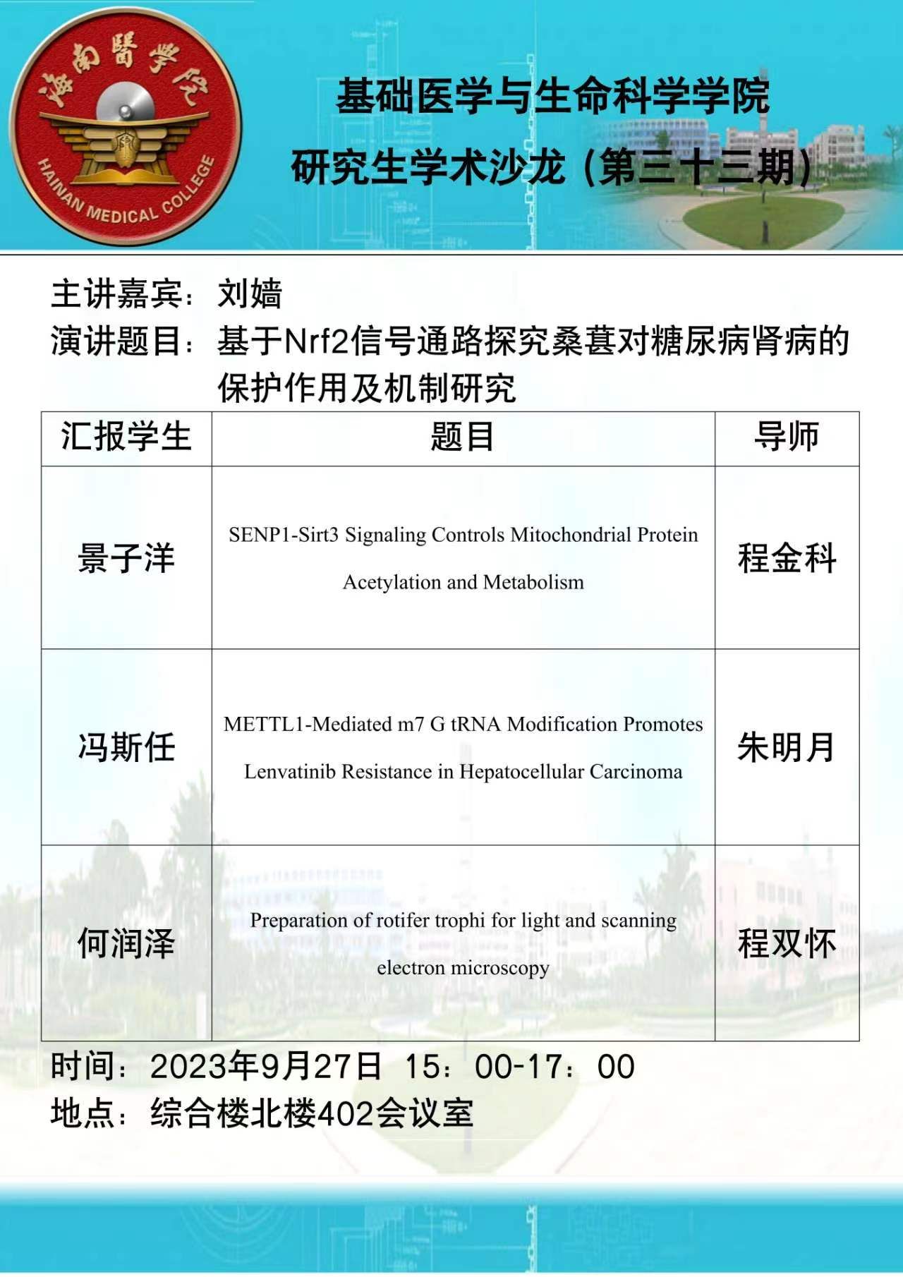 【学术沙龙】第33期:基于Nrf2信号通路探究桑葚对糖尿病肾病的保护作用及机制研究