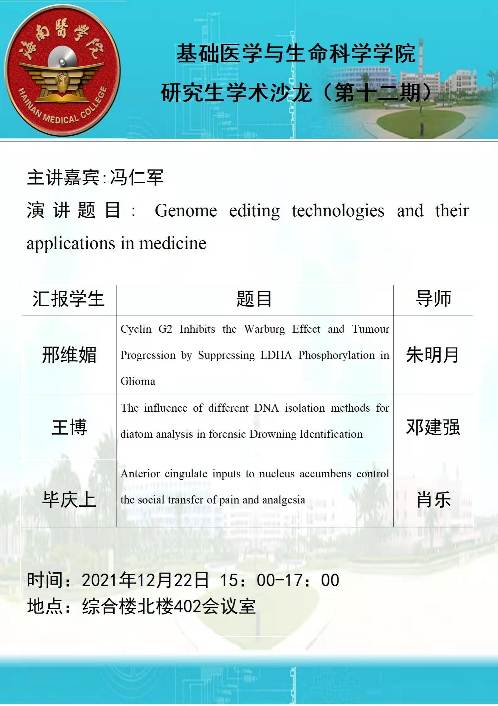 【学术沙龙】第12期:Genome editing technologies and theirapplications in medicine