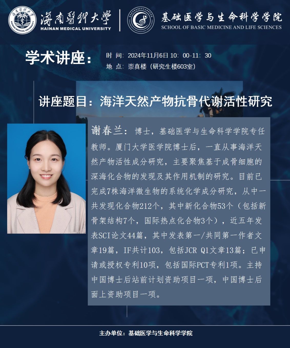 【学术讲座】海洋天然产物抗骨代谢活性研究