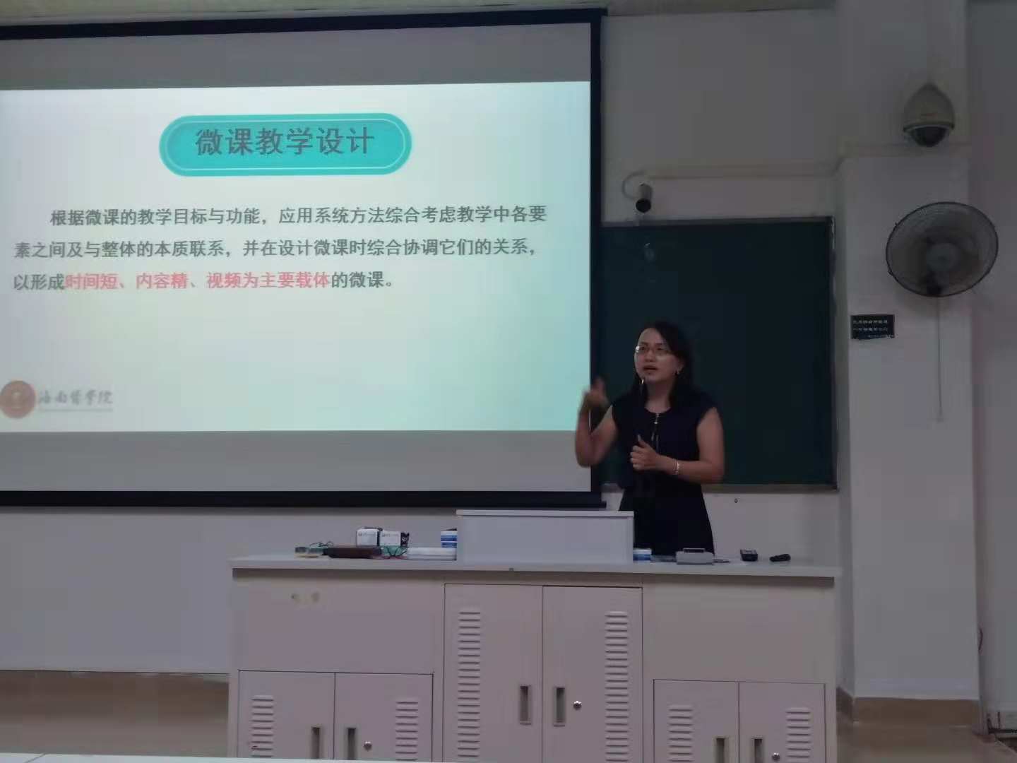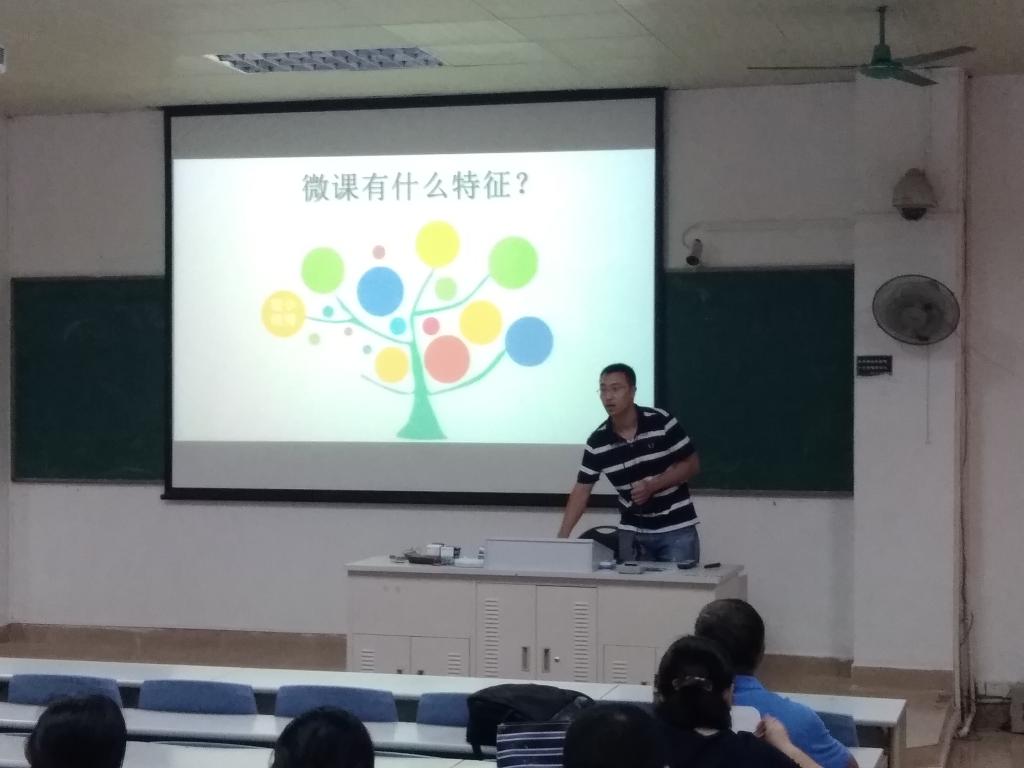首先由金剑峰教师对微课的概念与细节、作品规范、开展的背景、重要性及要达成的效果等做了相关介绍。