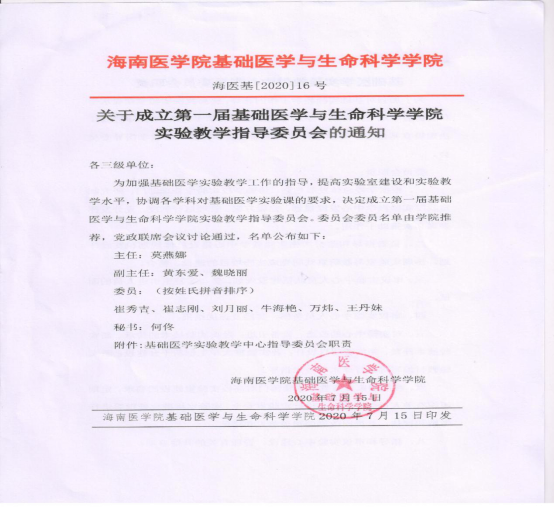 第一届“基础医学与生命科学学院实验教学指导委员会”