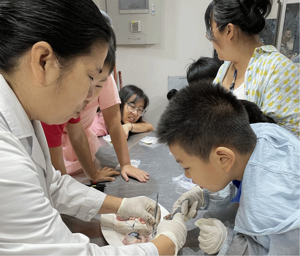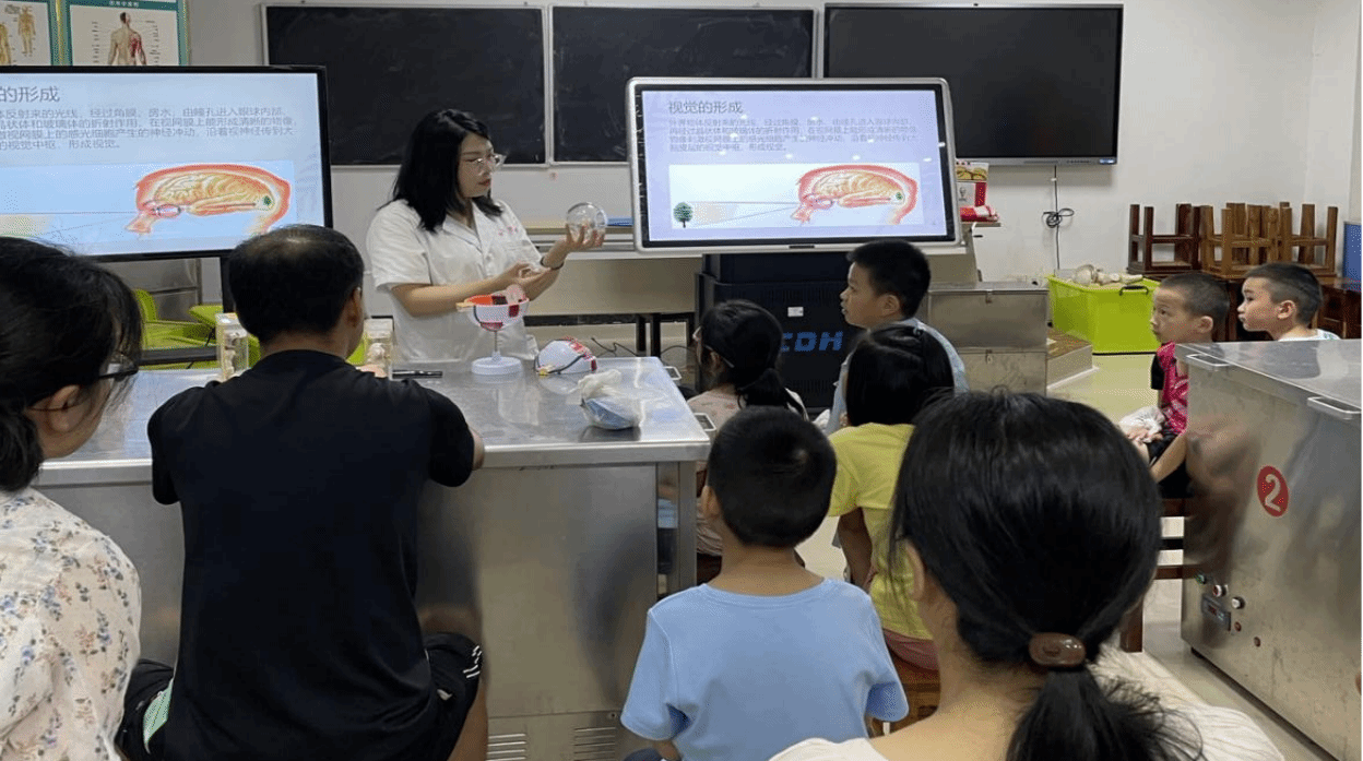 科普活动内容主要分为VR观察人眼结构,近视原理和防护,牛眼的结构的观察体会三个环节。通过牛眼解剖,深入了解眼睛的结构,比如睫状体与晶状体的关系,知晓了保护视力的知识和方法。