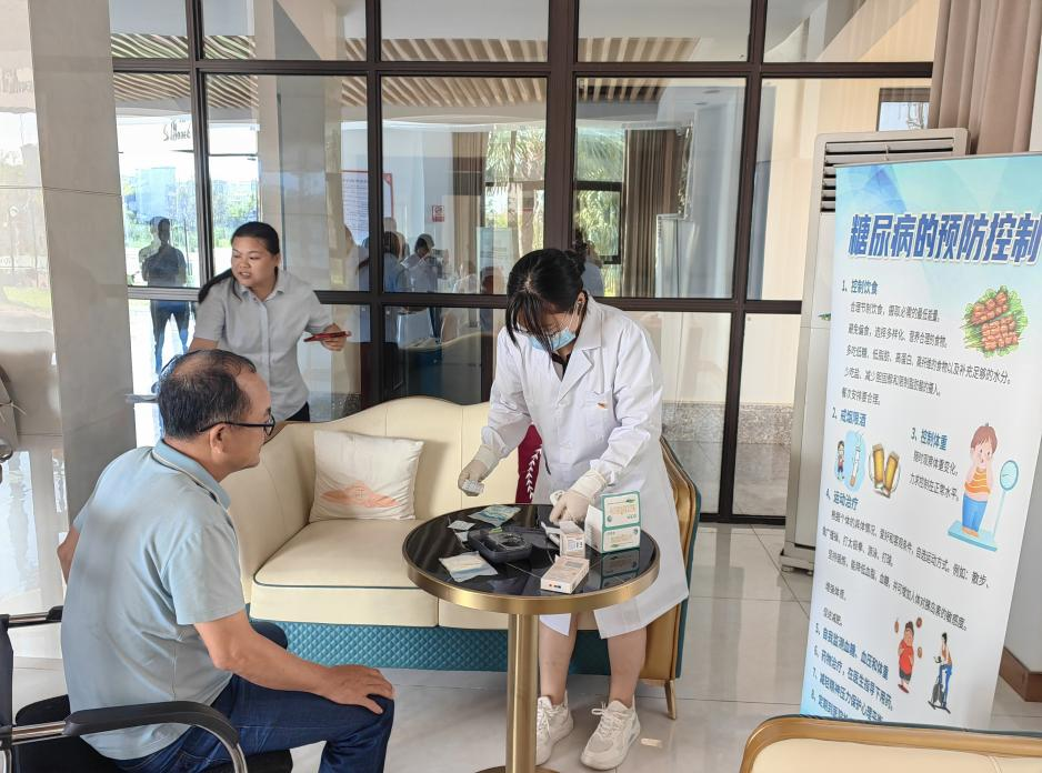 在繁忙的都市生活中,健康往往成为被忽视的一环,尤其是糖尿病这一“沉默的杀手”,发病人数越来越多,正悄无声息地威胁着无数人的健康。为了提升公众对糖尿病的认识,增强自我保健意识,taptap点点官网基础医学与生命科学学院生理学教研室的教师在董战玲主任和李冬洋支部书记的组织和带领下,翁启芳、张彩彩、陈国斌、许闽广等几位教师走出校园,携手海南省澄迈县老城镇中国石化海南分公司马村培训中心,于2024年9月25日举办了一场别开生面的关于“预防糖尿病”的科普宣传活动。