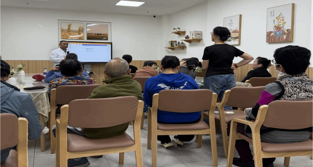 2024年12月13日下午,基础医学与生命科学学院药理学教研室的曾祥周、李佩琼、姚思、黄伟、赵伟楠等老师前往琼山区国兴街道综合养老服务中心,开展了一场主题为“健康晚年,安全用药”的公益科普活动。本次活动旨在提高老年人对药物使用的认识,减少药物滥用和误用的风险,帮助他们更好地管理自身健康状况。