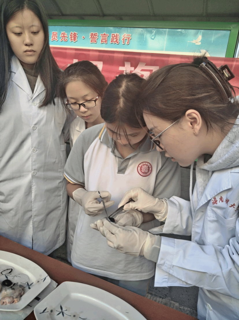 本科同学在教中学生解剖牛眼