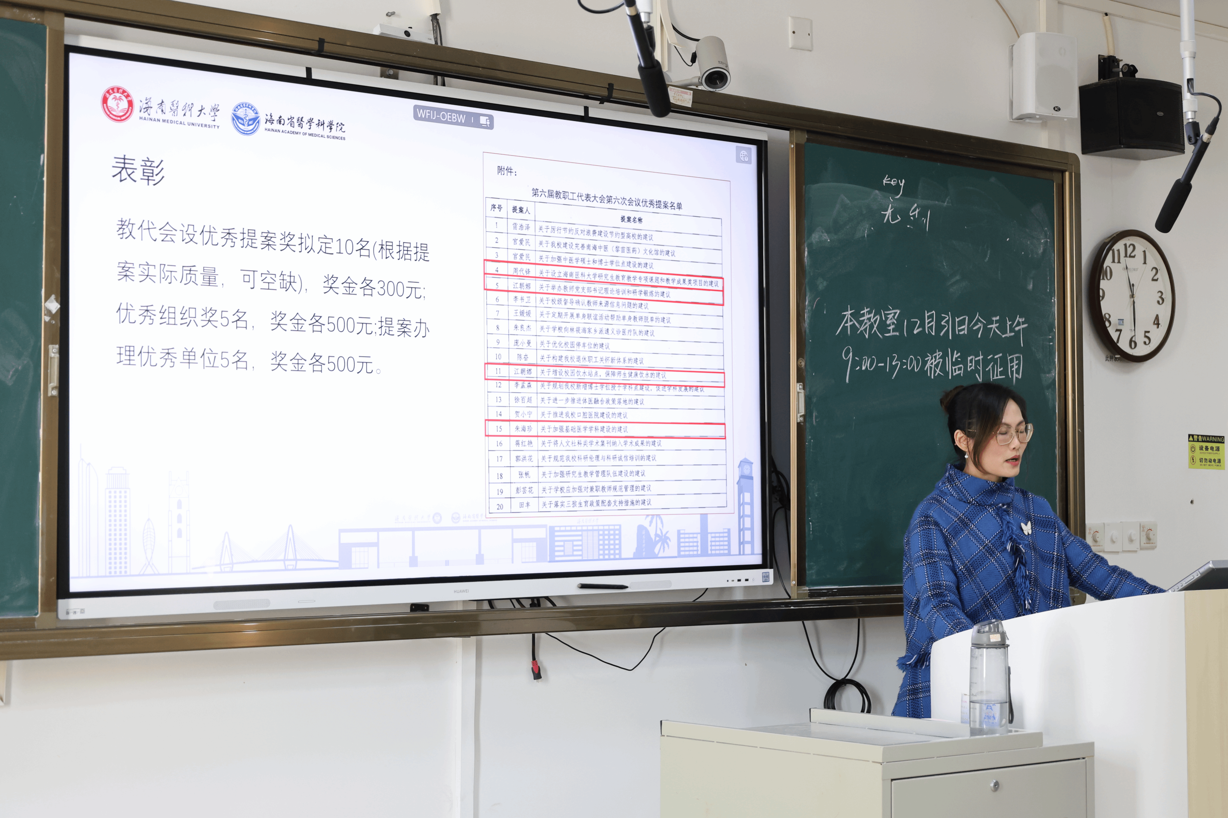 会上,江朝娜主席首先感谢了各位教代会代表对提案工作的大力支持。在大家的共同努力下,我院工会获得了第六届教职工代表大会第六次会议优秀组织单位的荣誉,共有4件提案入选了优秀提案名单。为进一步提高提案的质量,本次会议还邀请了优秀提案的提案人从提案的选题、调研、撰写等方面分享了宝贵经验,为与会代表提供了重要的借鉴和启发。