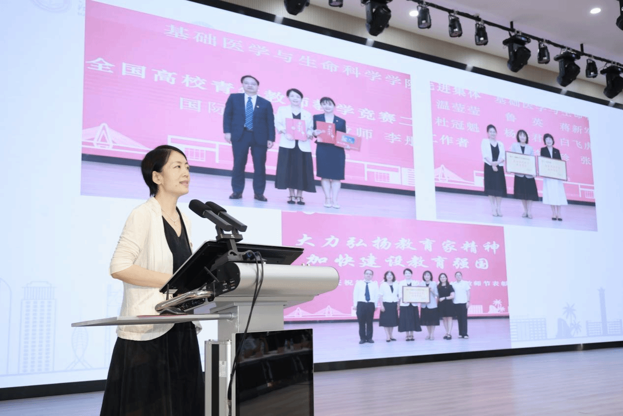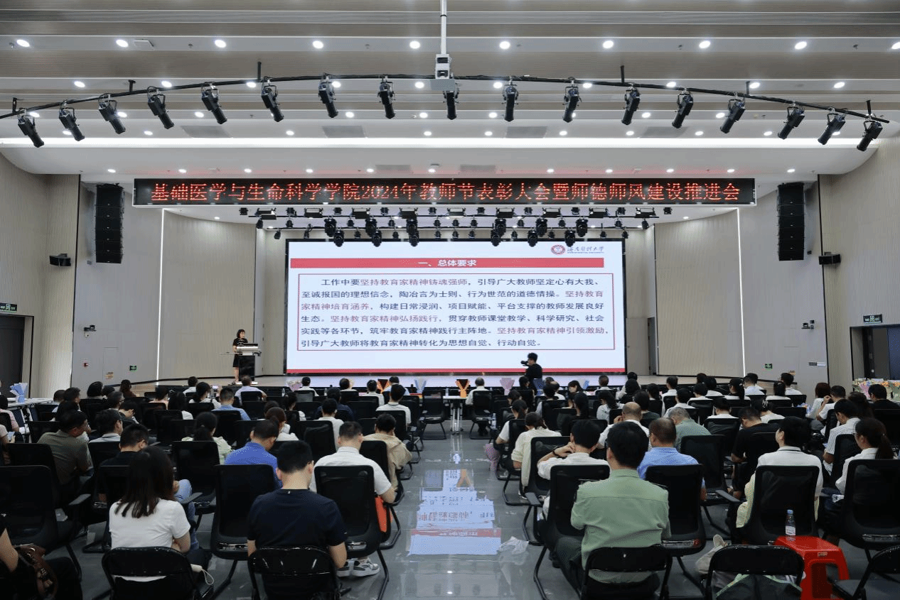 春华又秋实,桃李正芳菲。在第40个教师节到来之际,9月11日,基础医学与生命科学学院2024年教师节表彰大会暨师德师风建设推进会在国际会议中心(立言厅)举行。学院现任领导班子全体成员、历任领导班子成员代表、退休教师代表、全体教职员工参加本次大会,会议由副书记江朝娜主持。