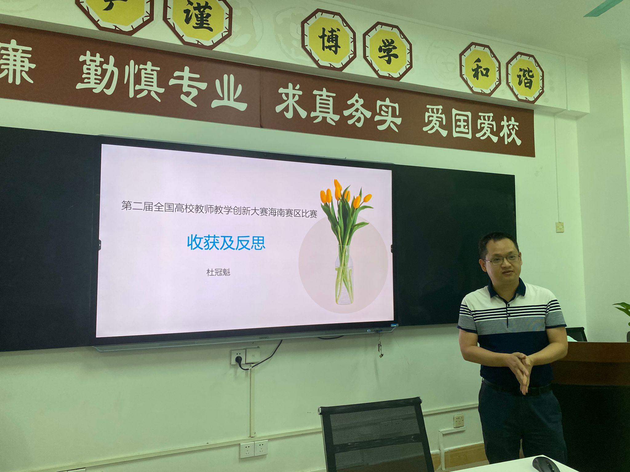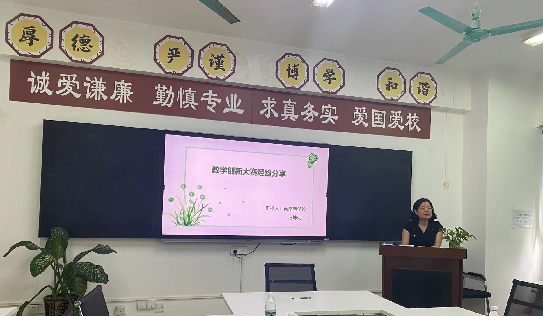 汪坤菊教授携团队参加首届全国高校教师教学创新大赛(海南赛区),获得省赛一等奖(副高组)的荣誉。汪老师结合自身参赛经验,详细分析了教学创新大赛的方式,尤其针对现场教学创新设计汇报环节进行了细致解读,并为以后准备参赛的老师们做了示范性教学。
