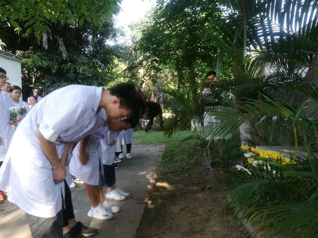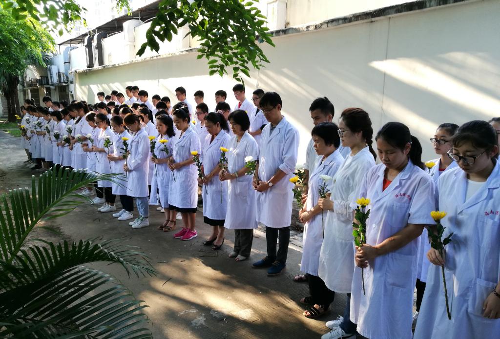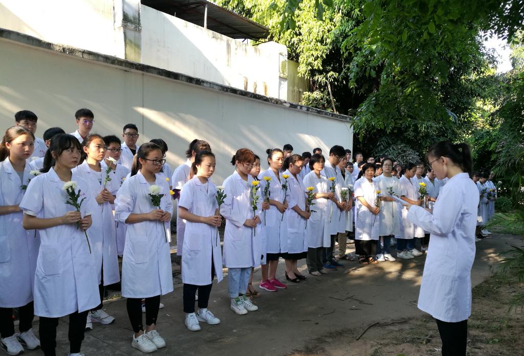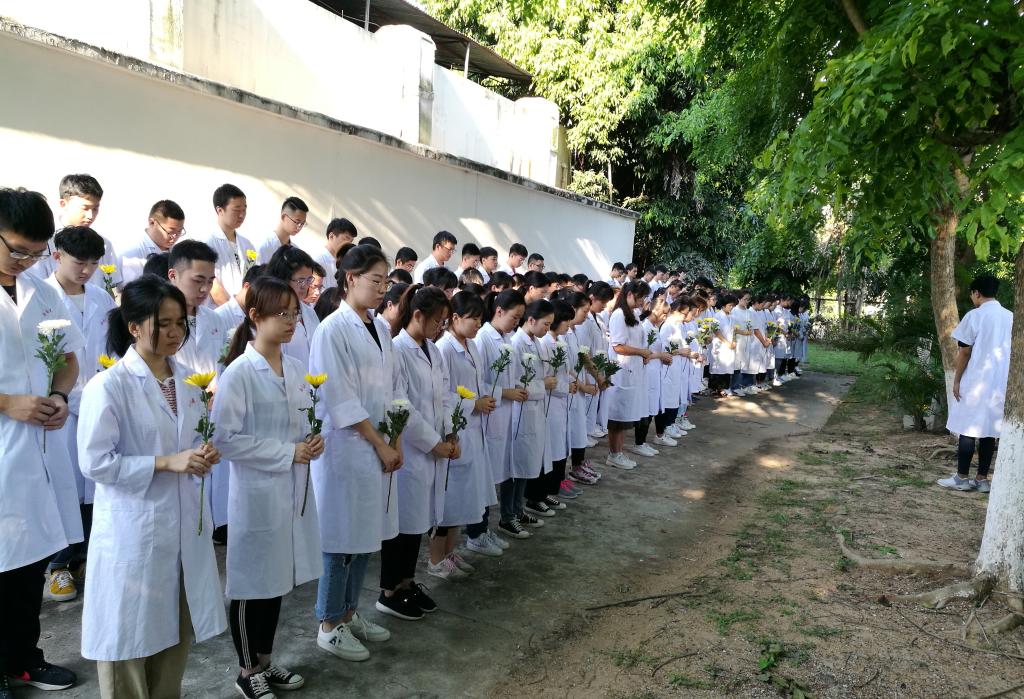 纪念活动在海南医学院美丽的人工湖旁的实验动物慰灵碑前举行,内容包括:1学生代表发言;2全体参加人员默哀1分钟;3献花。参加活动的有基础医学与生命科学学院副院长莫燕娜、机能学实验室主任王丹妹、副主任高凌峰,机能学实验室全体老师及医学生代表近150余人。