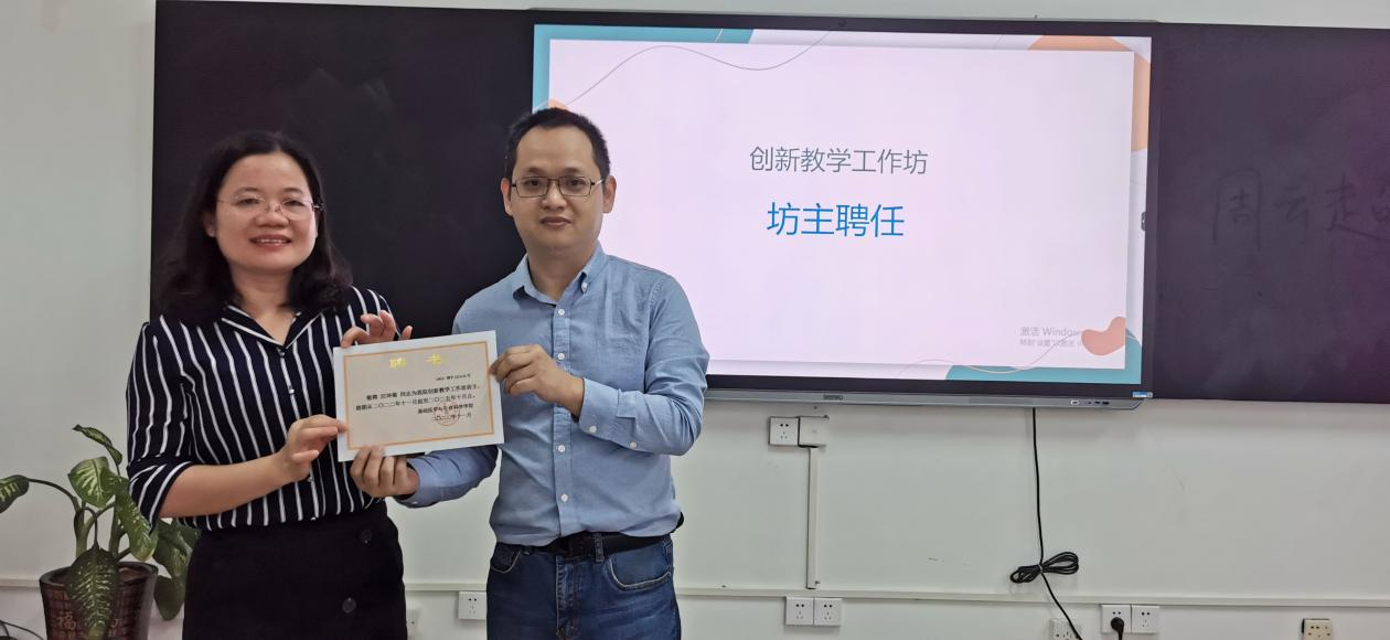 本次分享会还宣布成立“创新教学工作坊”,并聘任汪坤菊教授为坊主,汪教授携团队参加首届全国高校教师教学创新大赛获得省赛一等奖的荣誉,该工作坊的成立,可以帮助更多的青年教师提高教学创新能力。