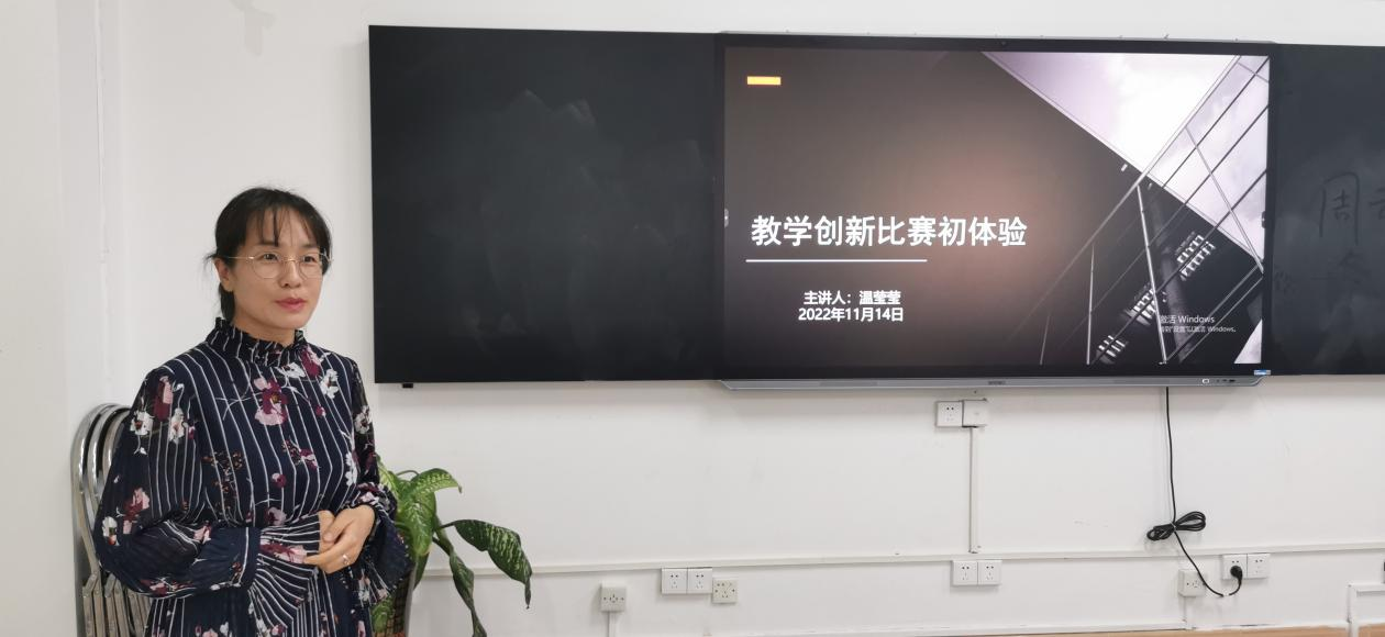 此次沙龙特邀请第二届全国高校教师教学创新大赛获奖教师温莹莹教授为各位教师带来经验分享。温莹莹教授结合自身参赛经验,详细分享了参赛前的准备工作以及注意事项,为与会者带来更多创新教学思路。