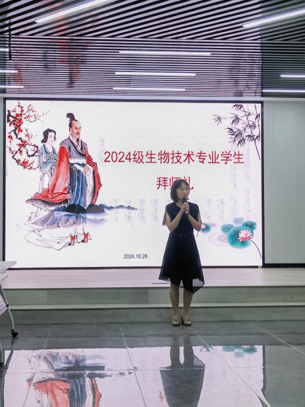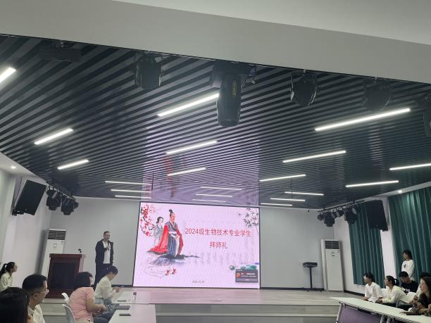 2024年10月28日,taptap点点官网基础医学与生命科学学院生物技术专业举办了2024级拜师典礼,现场气氛喜庆而庄重。该活动旨在传承学术、构建师生沟通桥梁,助力学子专业全面发展。典礼于大学生中心演播室举行,基础医学与生命科学学院党委书记王晗、院长杨文君、副书记江朝娜、副院长杜冠魁、辅导员黄慈云、专业秘书王亚如,以及2024级全体学生和导师均出席。