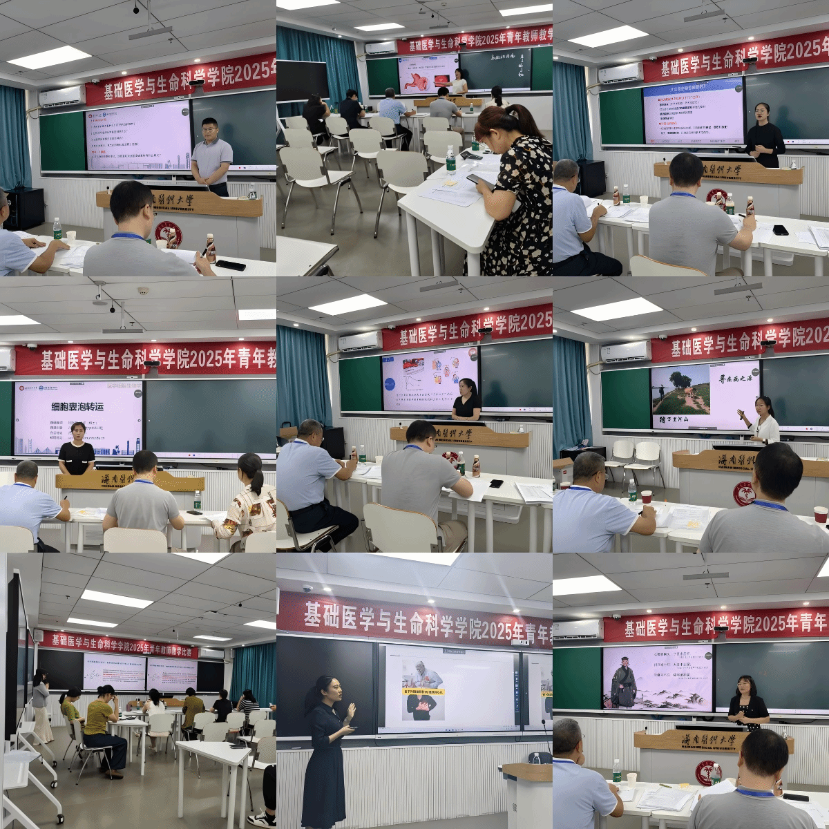 竞赛伊始,杜冠魁副院长作开场致辞,强调了教学质量在学院发展中的核心地位,鼓励青年教师们在竞赛中展现风采、相互学习。竞赛过程中,参赛教师们各展其能,通过精心设计的教案、生动的课堂讲授以及多样化的教学方法,充分展示了扎实的专业知识和独特的教学风格。从人体解剖学的直观演示,到生理学的原理剖析,再到生物化学与分子生物学的前沿解读,每一堂课都精彩纷呈,赢得了现场评委和观摩教师的阵阵掌声。