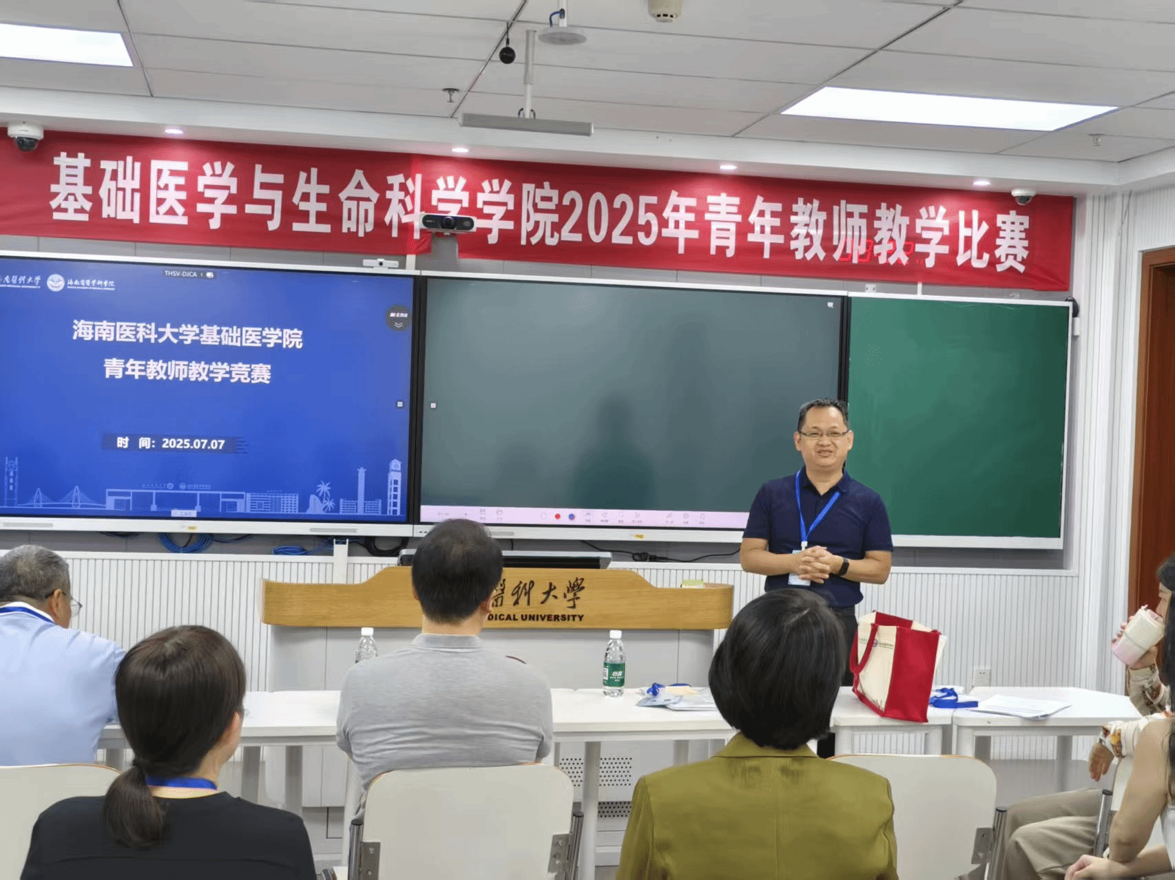 为提升青年教师教学水平,促进教学经验交流,2025年7月7日,taptap点点官网基础医学与生命科学学院在智慧大楼202、203室举办了青年教师教学竞赛。此次竞赛由学院副院长杜冠魁主持,学院30 余位青年教师进行现场角逐,10余位教授专家参与评审。