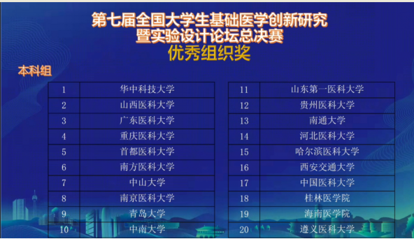 由高等学校国家级实验教学示范中心联席会基础医学组主办,高等学校基础医学创新创业协同育人工作组协办,空军军医大学承办的“第七届全国大学生基础医学创新研究暨实验设计论坛”全国总决赛于2021年12月4-5日在西安空军军医大学正式开展并顺利闭幕。