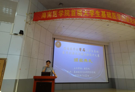 2020年7月22日下午,海南医学院首届大学生基础医学创新论坛暨实验设计大赛颁奖典礼在新址城西校区多功能报告厅举行,典礼由基础医学与生命科学学院易西南院长主持。