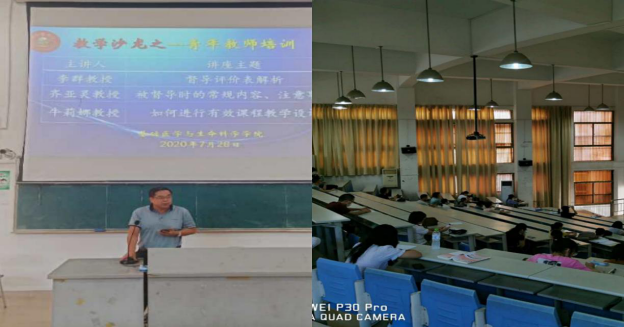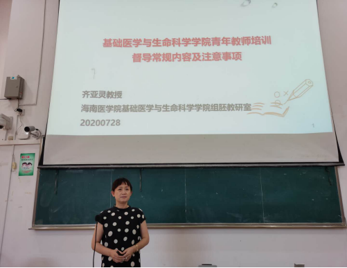 为了提高教学质量,增强教师的业务素质,加强对新教师的培养,更为普及督导工作知识,强化课堂设计,帮助青年教师尽快提高业务能力,基础医学与生命科学学院于2020年7月28日上午在1-102教室举办青年教师培训会,邀请校督导专家李群教授,院督导组长齐亚灵教授,全国优秀青年教师牛莉娜教授做讲座。培训会由易西南院长主持,学院各三级单位的青年教师参加。