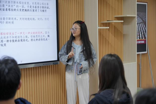 23级分享会在戚旭同学的主持下拉开帷幕。羊俊晓同学分享了莫言的《蛙》,以幽默生动的讲述,带领大家回顾中国农村生育政策的变迁,引发对生命与伦理的思考;刘柯含同学解读《我与地坛》,从史铁生的沉静文字中读出生命的坚韧与母爱的深沉;谢汶辰同学带来巴金《雾·雨·电》,剖析青年在时代洪流中的理想与情感,传递出在迷茫中探索、在风雨中成长的力量。