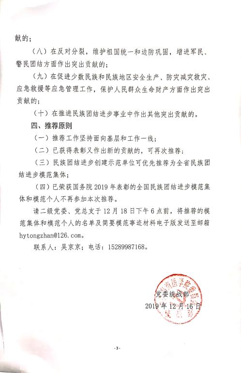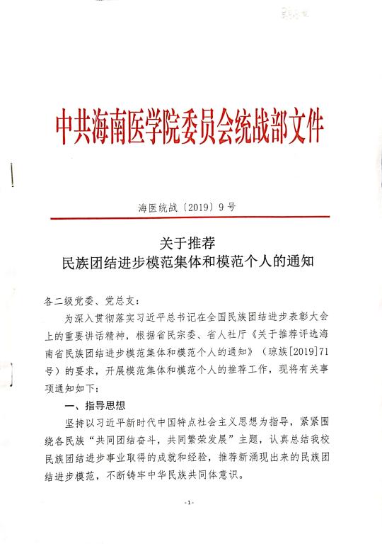 关于推荐民族团结进步模范集体和模范个人的通知