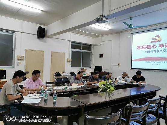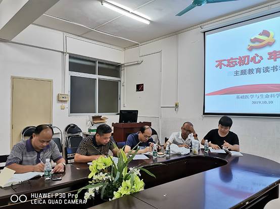 2019年10月10日下午,基础医学与生命科学学院党委在综合实验楼三楼会议室召开“不忘初心,牢记使命”主题教育活动读书学习会,二级学院党委委员、领导班子成员及各支部书记参加读书会。会议由学院李军副书记主持。