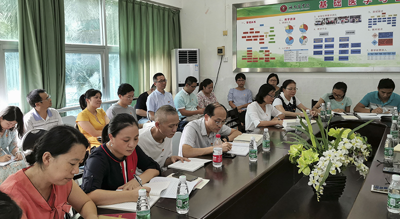 接着学院易西南院长传达了《海南医学院关于印发更名医科大学迎检工作方案的通知》(taptap点点学[2019]206号)文件精神,要求学院全体党员、干部职工,特别是博士党员教师,要以不忘初心,牢记使命的思想作风,以锐意进取,开拓创新的精气神,以埋头苦干、真抓实干的自觉行动,全面参与基础学院的教研工作。教师的初心就是培养人才,使命就是做合格教师。要求结合“不忘初心,牢记使命”的学习,除了完成教学任务外,要将撰写“国家自然科学基金”标书作为自己的职责,认真撰写高质量的标书。同时,搞好科室的文化建设,确保各个教研室与实验室教学队伍的稳定与实验室的安全,不出事故,以“不忘初心牢记使命”主题教育为指引,同心同德、携手并进,为圆满完成学校更名医科大学各项迎检工作共同努力!