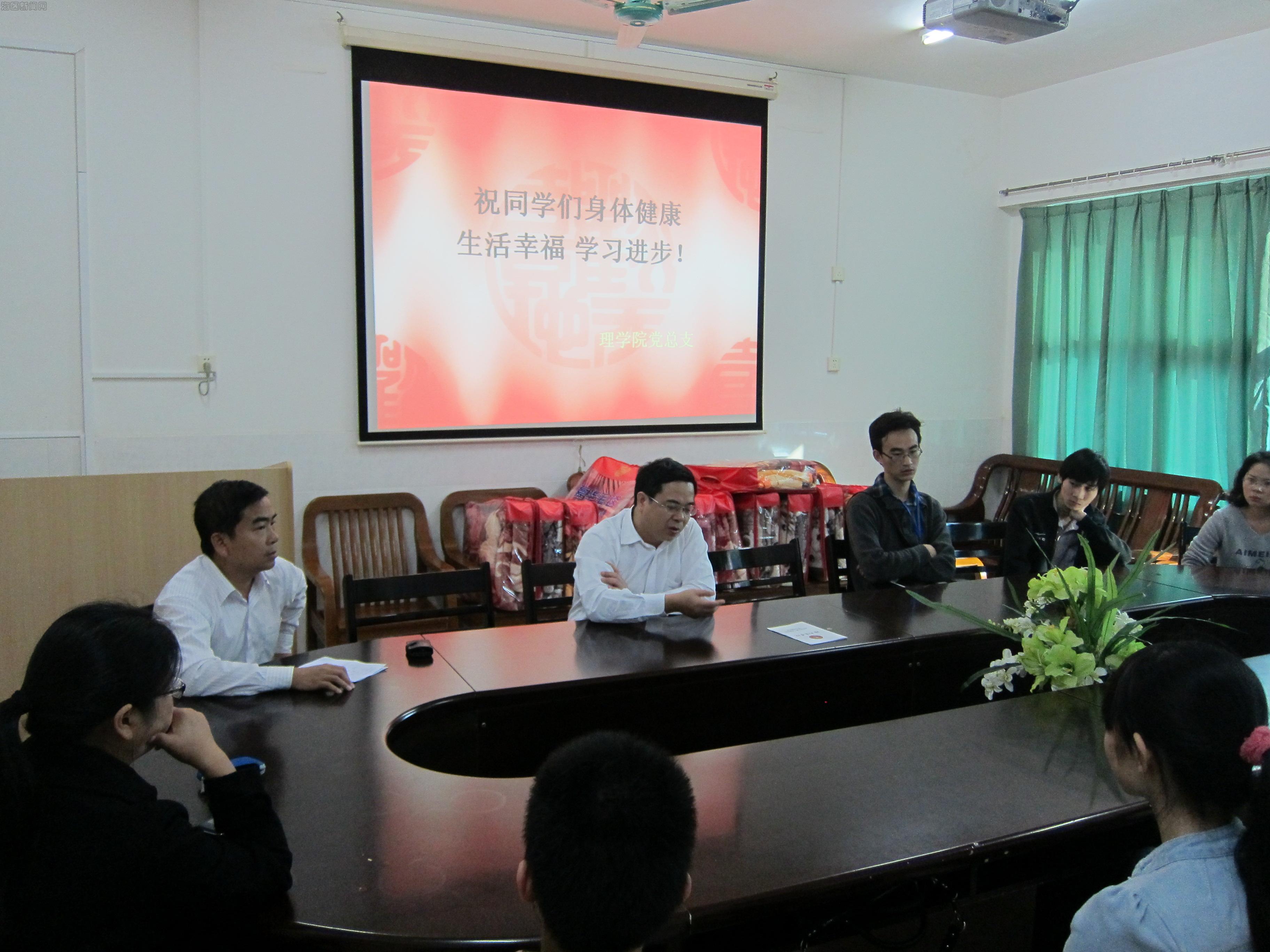 近期海南气候较冷,为了给生活贫困的同学予生活上的关怀,理学院党总支开展“暖冬”慰问活动。1月17日,理学院党总支周代锋书记、黄泽云副书记、团委高新征书记、王小强老师走访宿舍,慰问贫困学生,给各班级贫困学生共12人每人赠送一张毛毯。活动中,周代锋书记希望贫困同学人穷志不穷,命运掌握在自己手里,通过努力改变自己的命运,同时举自身生活经历和其他毕业学生的经历为例,鼓励同学们,总支会关心学生生活,确保学生专心学习,完成学业。黄泽云副书记希望同学们将老师的关怀转化为动力,努力学习,管好自身,管理好宿舍,并带动其他同学良性发展。
