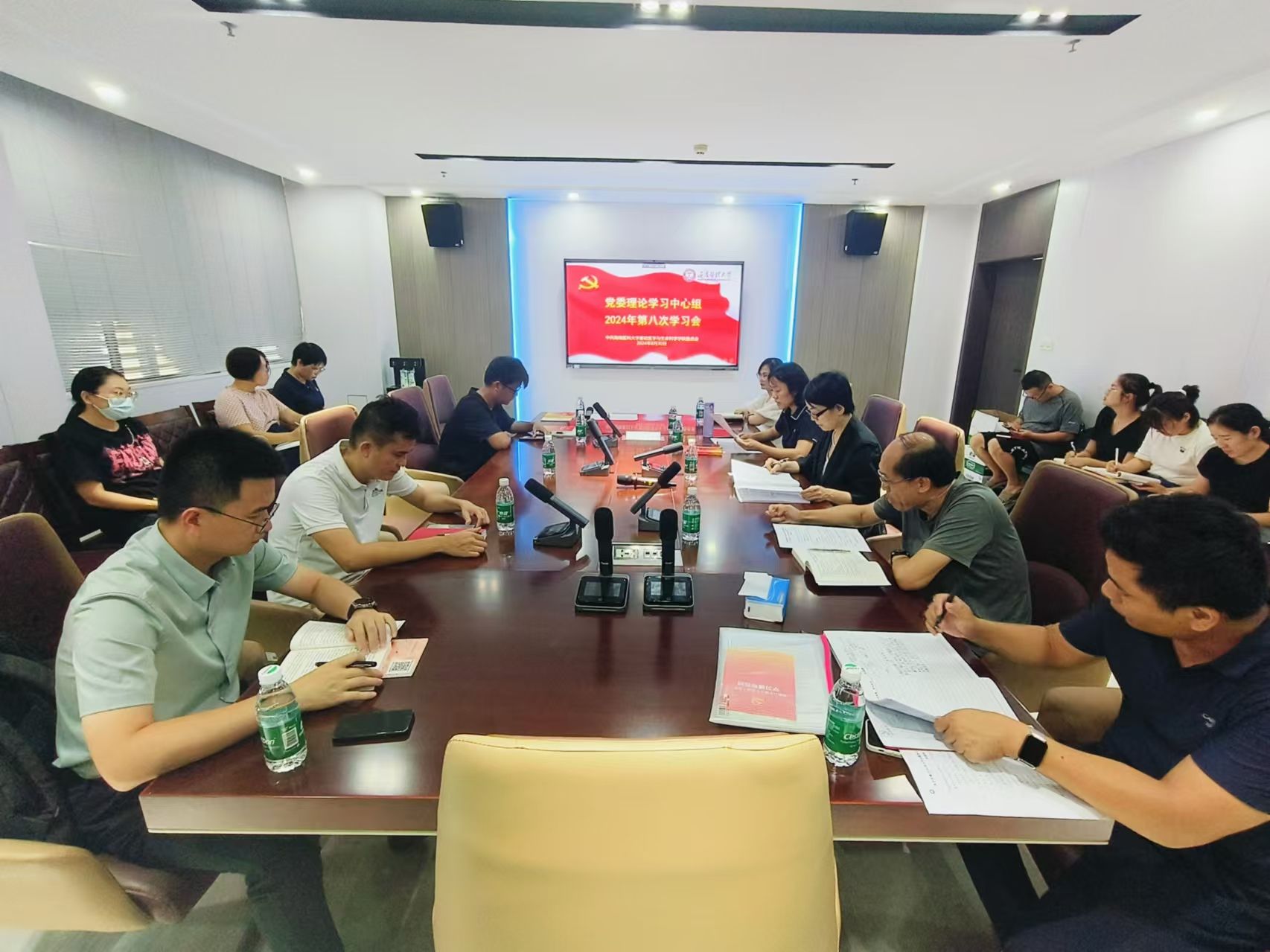 2024年8月30日下午,我院党委理论学习中心组在崇真楼712会议室顺利召开2024年第八次学习会,会议由王晗书记主持,学院党委委员、各支部书记、纪委委员和各支部纪检委员参加会议。会议具体内容如下: