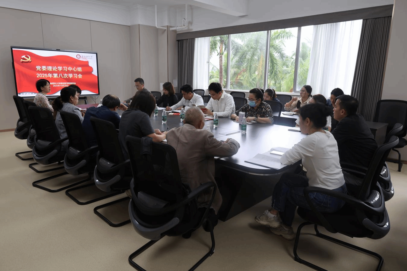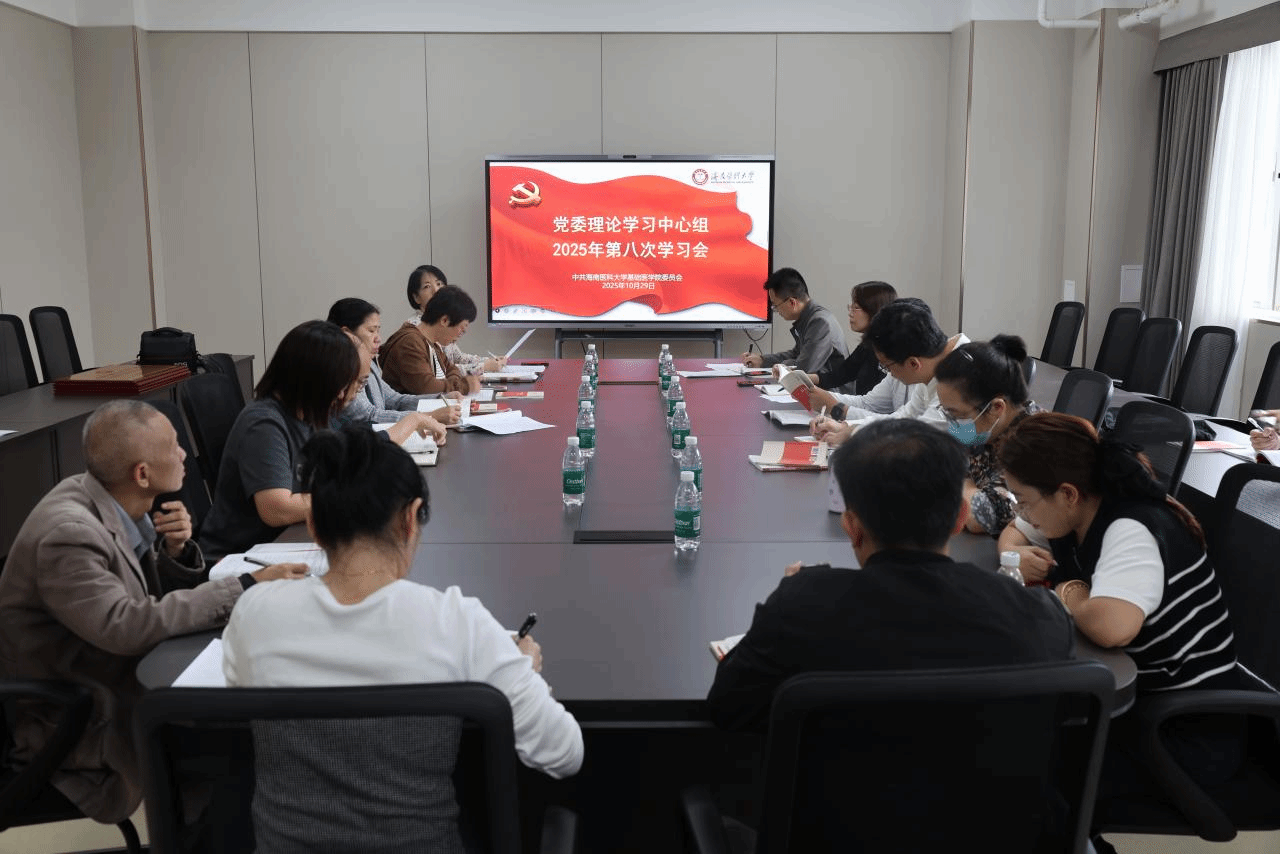 颁牌仪式后,理论学习中心组围绕6项重点内容开展集中学习。杨文君书记领学党的二十届四中全会精神和省委常委会(扩大)会议精神,要求学院上下锚定“教育强国”“健康中国”战略,结合海南“热带医学高地”建设需求,在学科建设、人才培养中彰显担当。劳梅丽、谢蓉、虞道锐等同志分别领学《严禁党员干部违规吃喝的通知》《新时代领导干部家风建设意见》等学习材料,通过政策解读与案例剖析,为党员干部筑牢思想防线、划清行为底线。