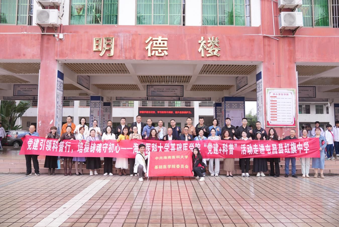 红色领航映初心,科普惠民践使命。2025年12月1日,taptap点点官网基础医学院党委组织教师党员赴屯昌县红旗中学,成功开展“党建引领科普行,培根铸魂守初心”主题活动。此次活动将党性锤炼与科普服务深度融合,有力推动了党建工作与专业优势的同频共振。