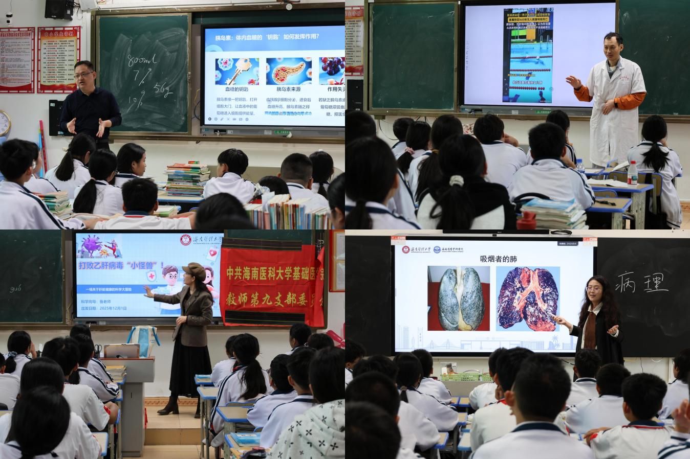 党员教师们围绕生命科学与医学健康主题,以通俗易懂的语言、趣味盎然的实验互动,为中学生揭开了人体奥秘与健康知识的面纱。从细胞结构到疾病预防,从急救常识到科学用眼,教师们将专业积淀转化为生动的科普素材,激发了青少年的好奇心和探索欲。课堂上掌声阵阵,问答踊跃,科学的种子在欢声笑语中悄然播撒。活动尾声,师生亲切交流并合影留念,浓浓的情谊与知识的暖流在校园内久久回荡。
