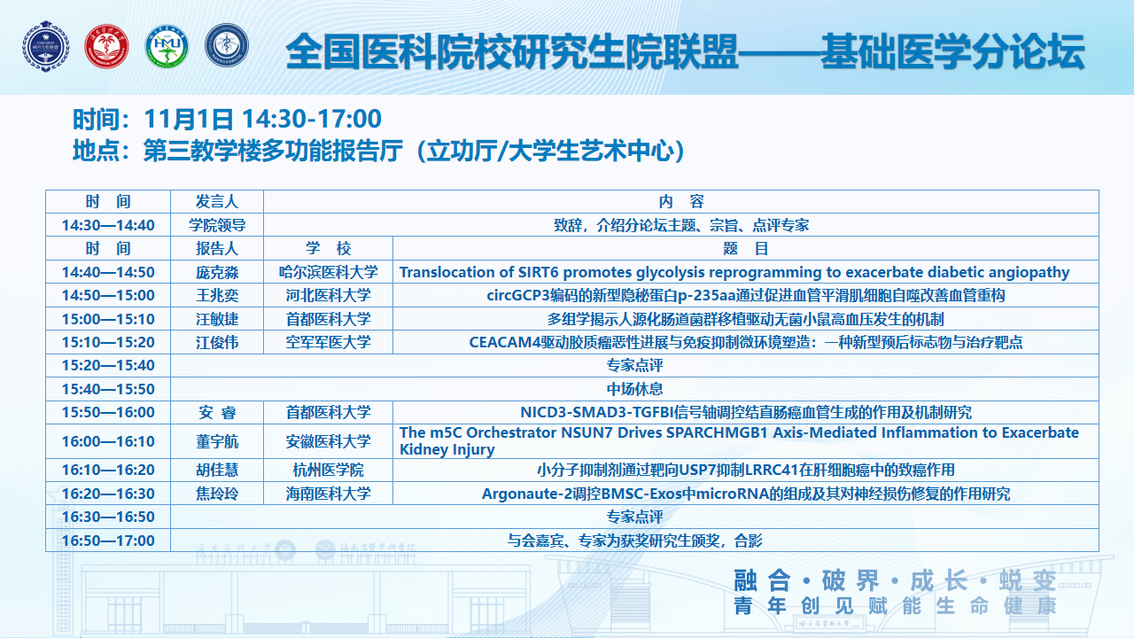 全国医科院校研究生院联盟2025年研究生论坛——基础医学分论坛
