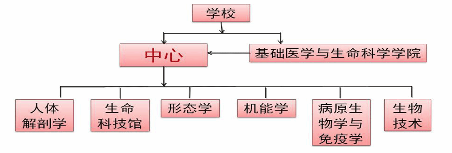 目前,基础医学实验教学中心由5个实验室组成,包括人体解剖学实验室(含人类生命科技馆)、形态学实验室、机能学实验室、病原生物学与免疫学实验室、生物化学与分子生物学实验室(生物技术专业实验室)。中心场地面积9600平方米,拥有教学实验室52间,细胞实验室2间,能同时容纳1702名学生上课;设备资产5000多万元,装备有3D数字人解剖系统、人体生理实验系统、信息化集成化生物信号采集处理系统、5Gwifi显微数码互动平台等先进教学设备。中心有专职人员42名,高级职称占33%。中心负责全校医学本、专科、留学生、研究生的基础医学实验教学,以及部分专业课程的实验教学任务,开设89门课程,每学年实验教学68.1万人学时。学校由教务处统筹,负责对中心设备投入、环境改造、实验室安全、课程设置、学生科研立项等实施全方位的决策和监督;学院负责中心岗位设置、人员管理、实验教学运行、实验教学资源建设进行规划指导和监督落实。
