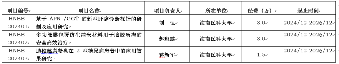 根据《重大疾病生物样本资源海南省工程研究中心开放课题基金管理办法》和《2024年度重大疾病生物样本资源海南省工程研究中心开放基金申报指南》的要求,经过研究审定入选3项,资助金额共计7.5万元(见附件1)。