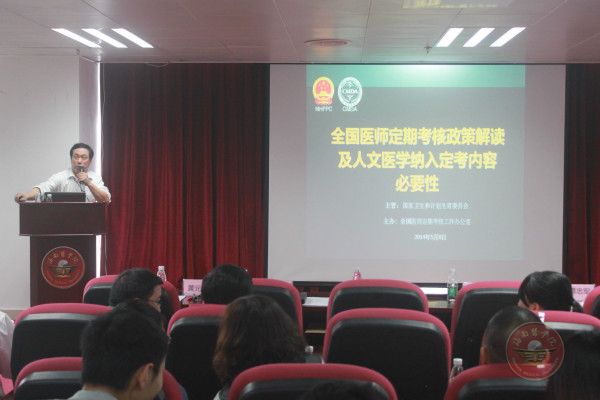 仪式结束后,中国医师协会全国医师定期考核工作办公室主任郝德明作了题为《全国医师定期考核政策解读及人文医学纳入定考内容的必要性》的讲座,通过政策、国情等层面解读了“中国式”医师定期考核。