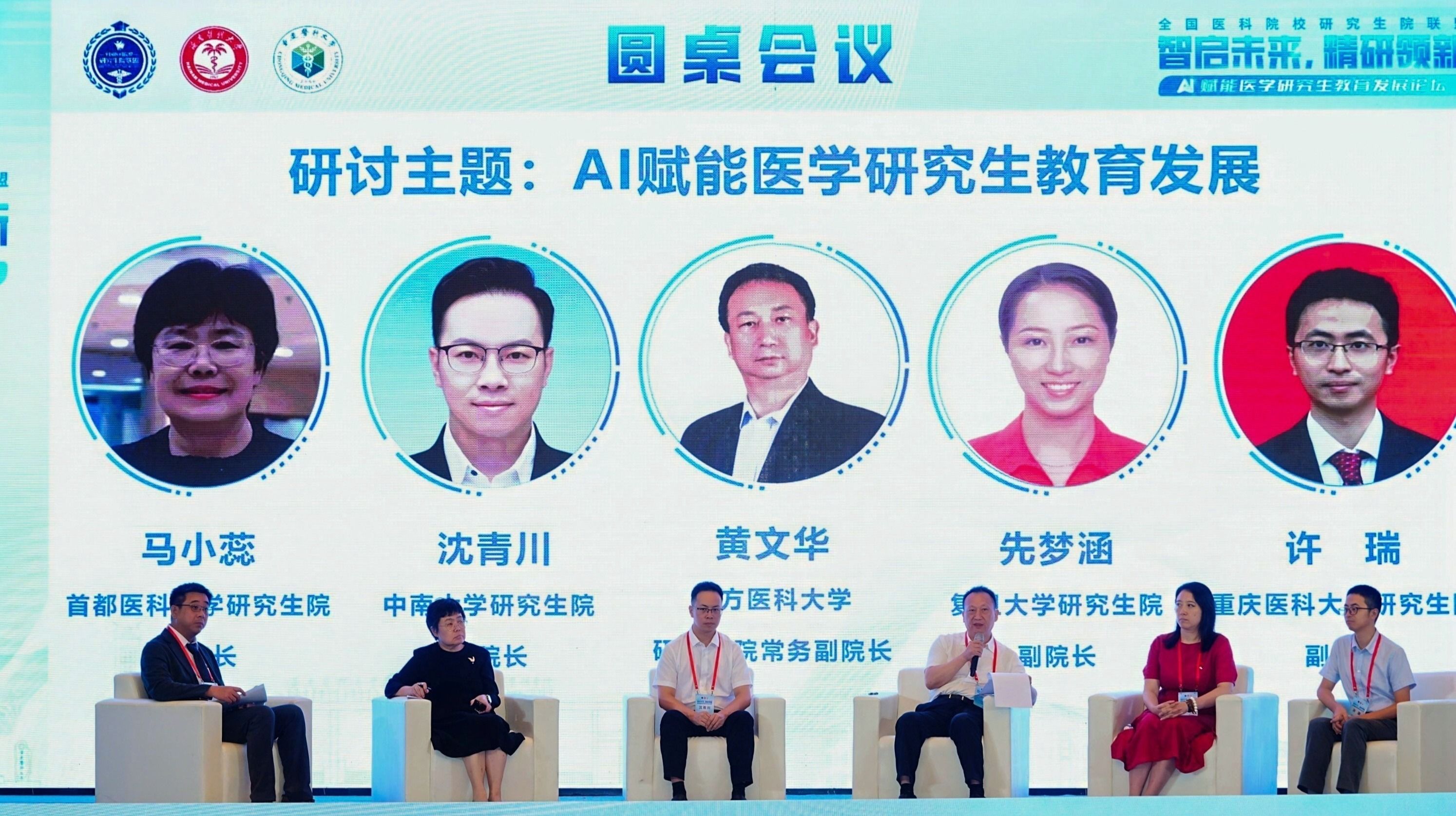 圆桌会议环节,由南方医科大学研究生院常务副院长黄文华与先梦涵、许瑞、马小蕊、沈青川五位专家共同参与。专家们围绕“用好AI赋能医学研究生教育发展”“研究生教育管理者在AI转型浪潮中引领研究生教育模式转变的探索”“研究生教育的数字化实践经验分享”等议题进行深入交流研讨。