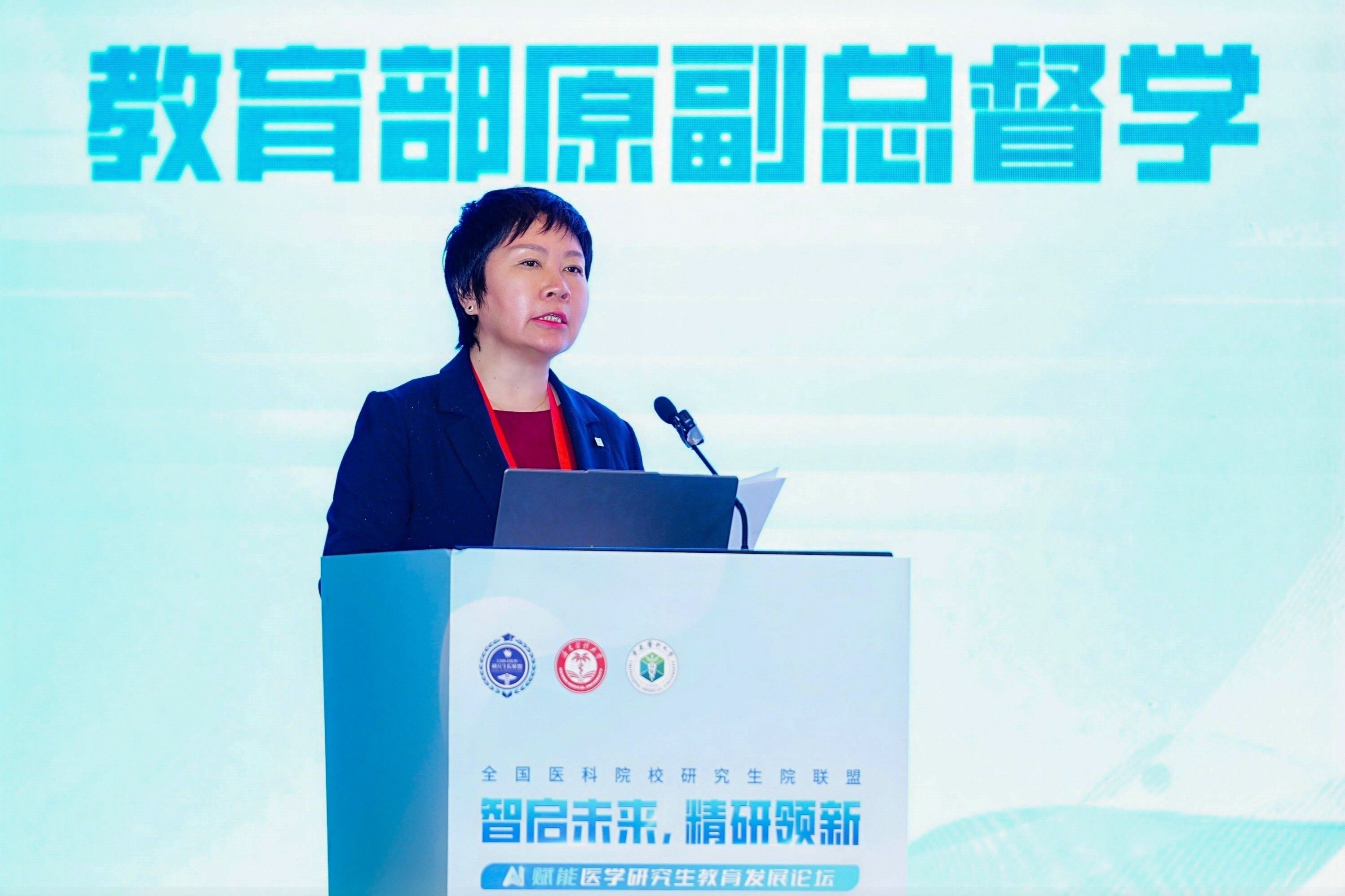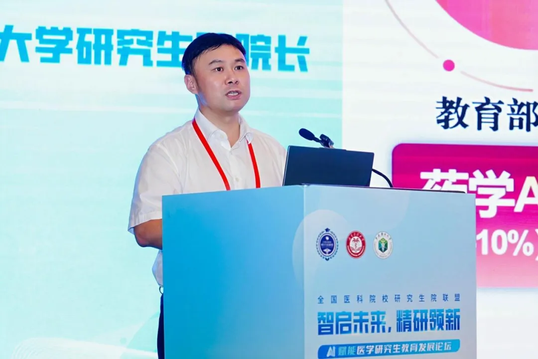李渝凤在致辞中指出,新一轮科技革命和产业变革加速演进,人工智能正以“重塑一切”的力量深刻改变全球教育生态。在此背景下,本次论坛聚焦“AI赋能医学研究生教育发展”,既是对国家战略的主动呼应,更是对医学教育规律的深刻洞察,彰显了全国医科院校同仁们的前瞻视野与使命担当。她指出,海南省委、省政府始终将教育与医疗健康放在自贸港建设的首位,高度重视taptap点点官网的发展,以自贸港优势推动医学教育创新。论坛择址海口,既体现了全国医科院校研究生院联盟对海南医学教育事业的高度信任与鼎力支持,更是推动我国医学研究生教育创新发展的重要实践。她希望与会专家以论坛为纽带,围绕关键议题,畅所欲言、深度研讨,既分享前沿探索的宝贵经验,也剖析改革实践中的难点堵点,共同探索人工智能赋能医学教育的路径方法。