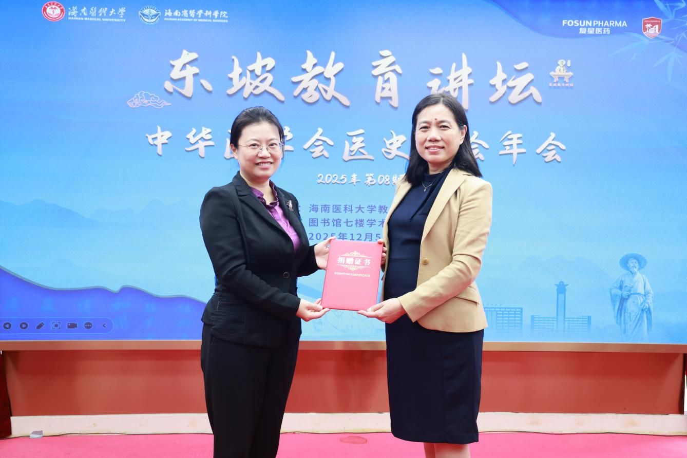 现场依次举行了专家证书颁发与图书捐赠仪式。曾敏代表学校向甄橙教授颁发了东坡教育讲坛特邀专家证书。甄教授则向学校捐赠了其学术著作《退烧简史》。该著作不仅丰富了taptap点点图书档案馆医学史特色馆藏,更为taptap点点师生提供了宝贵的学术参考。