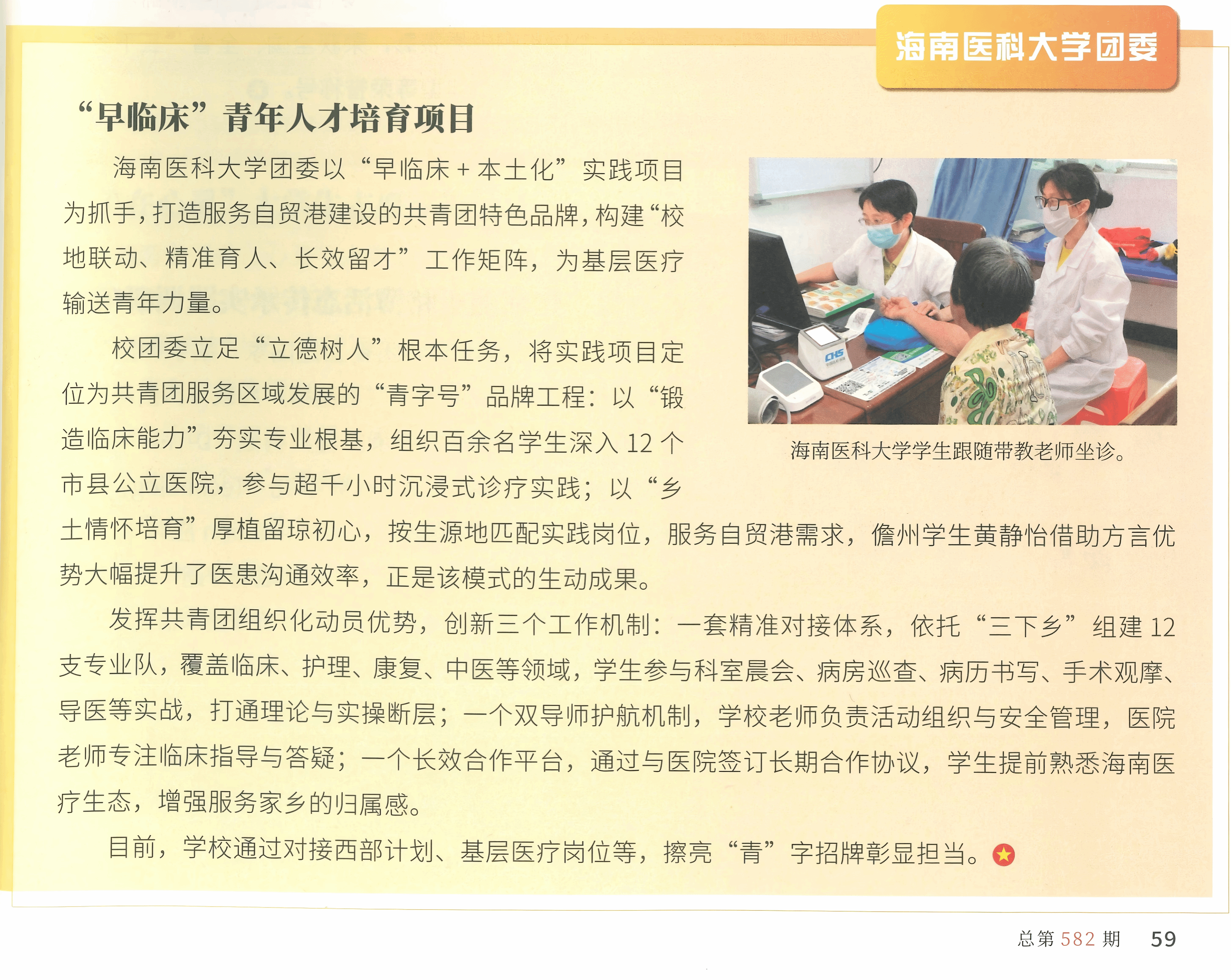 近日,《中国共青团》杂志刊发taptap点点团委撰写得关于“早临床”青年人才培养项目的文章,这标志着taptap点点共青团服务自贸港基层医疗建设的实践育人成果获国家级权威平台认可,是对学校共青团工作的高度肯定。