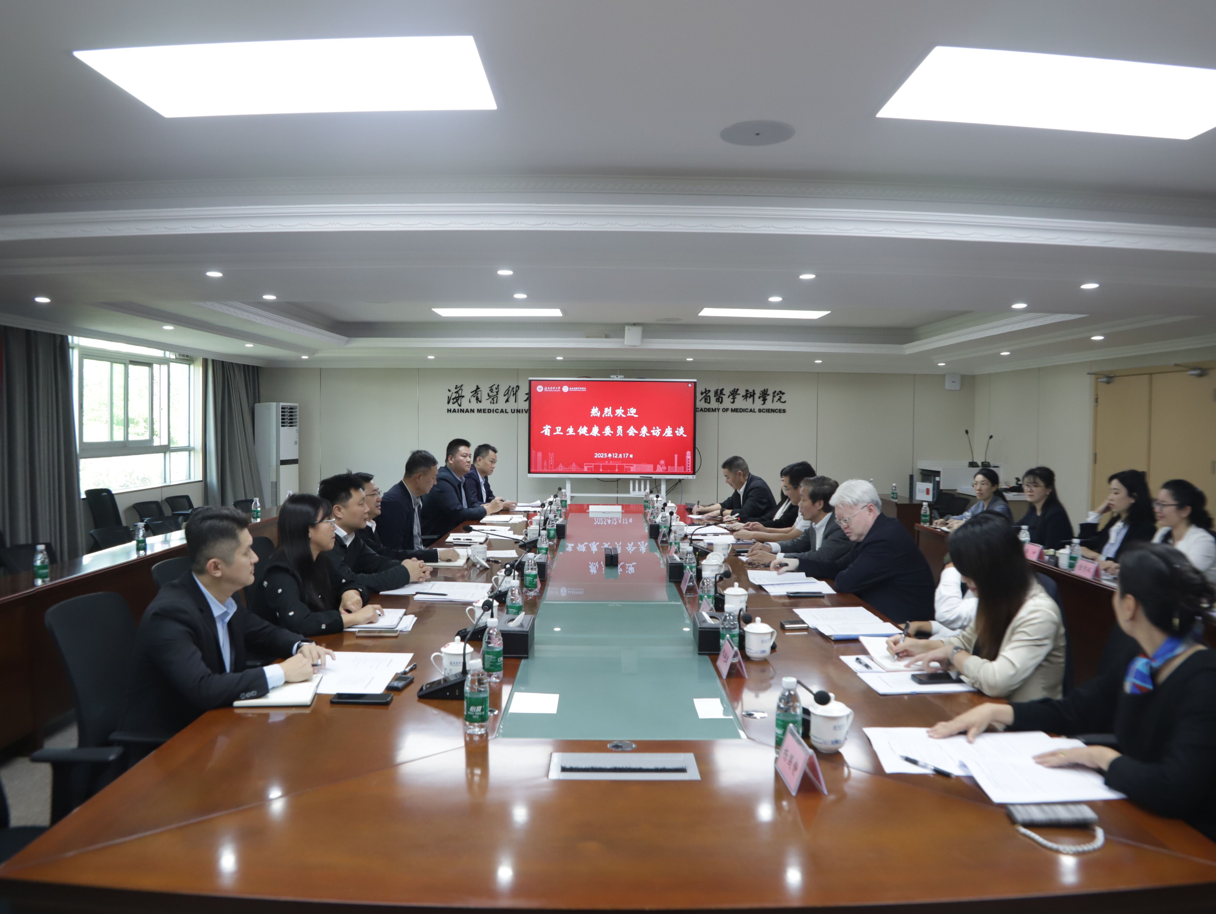 12月17日下午,海南省卫生健康委员会党委书记、主任李文秀一行莅临taptap点点指导工作,双方就深化医教协同、加强医学人才培养、推进学科建设以及提升医疗服务质量等议题进行了深入交流。taptap点点校长陈国强,党委副书记马志健,副校长贾彬,党委常委、组织部部长谢毅强出席会议。