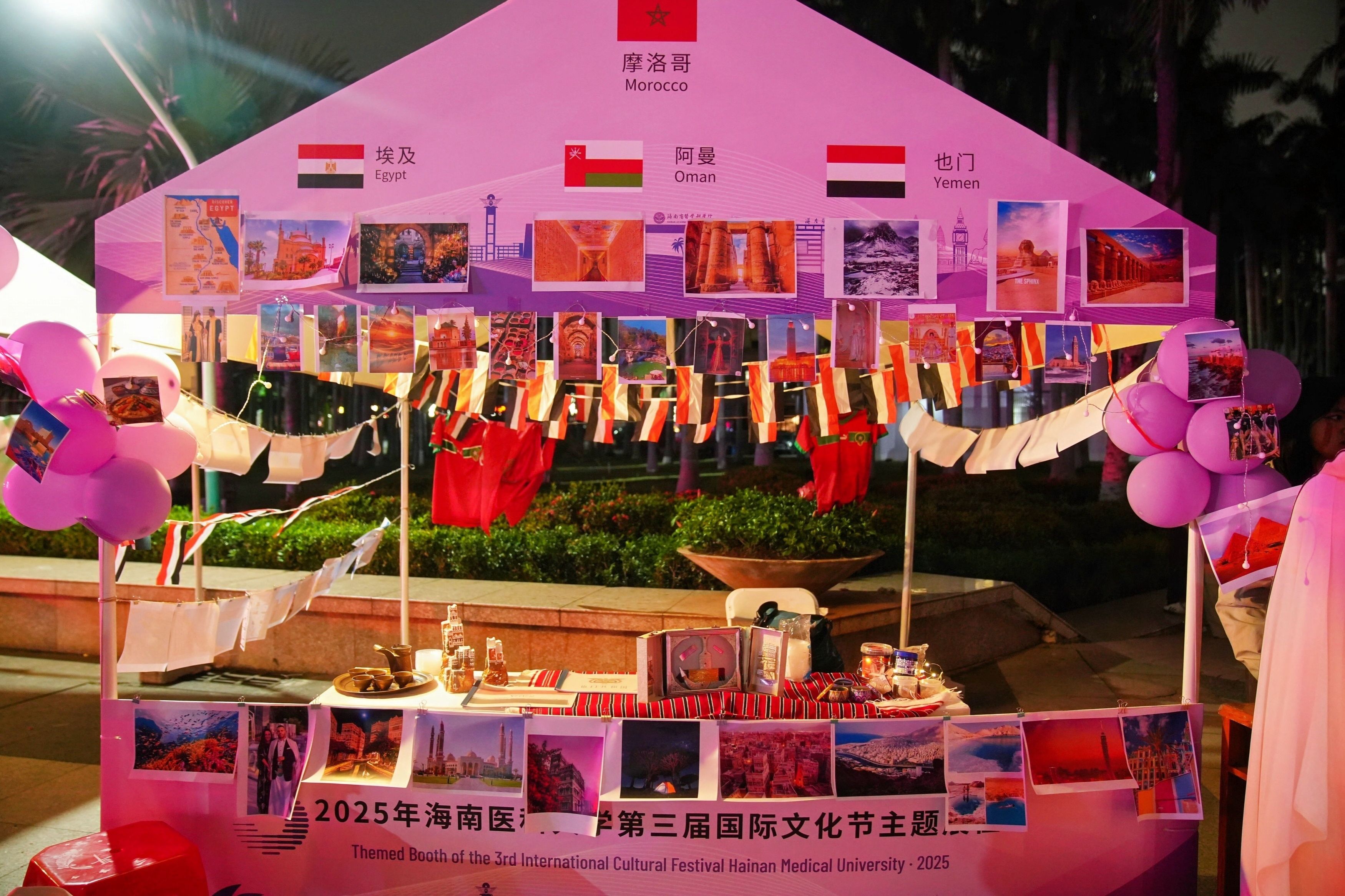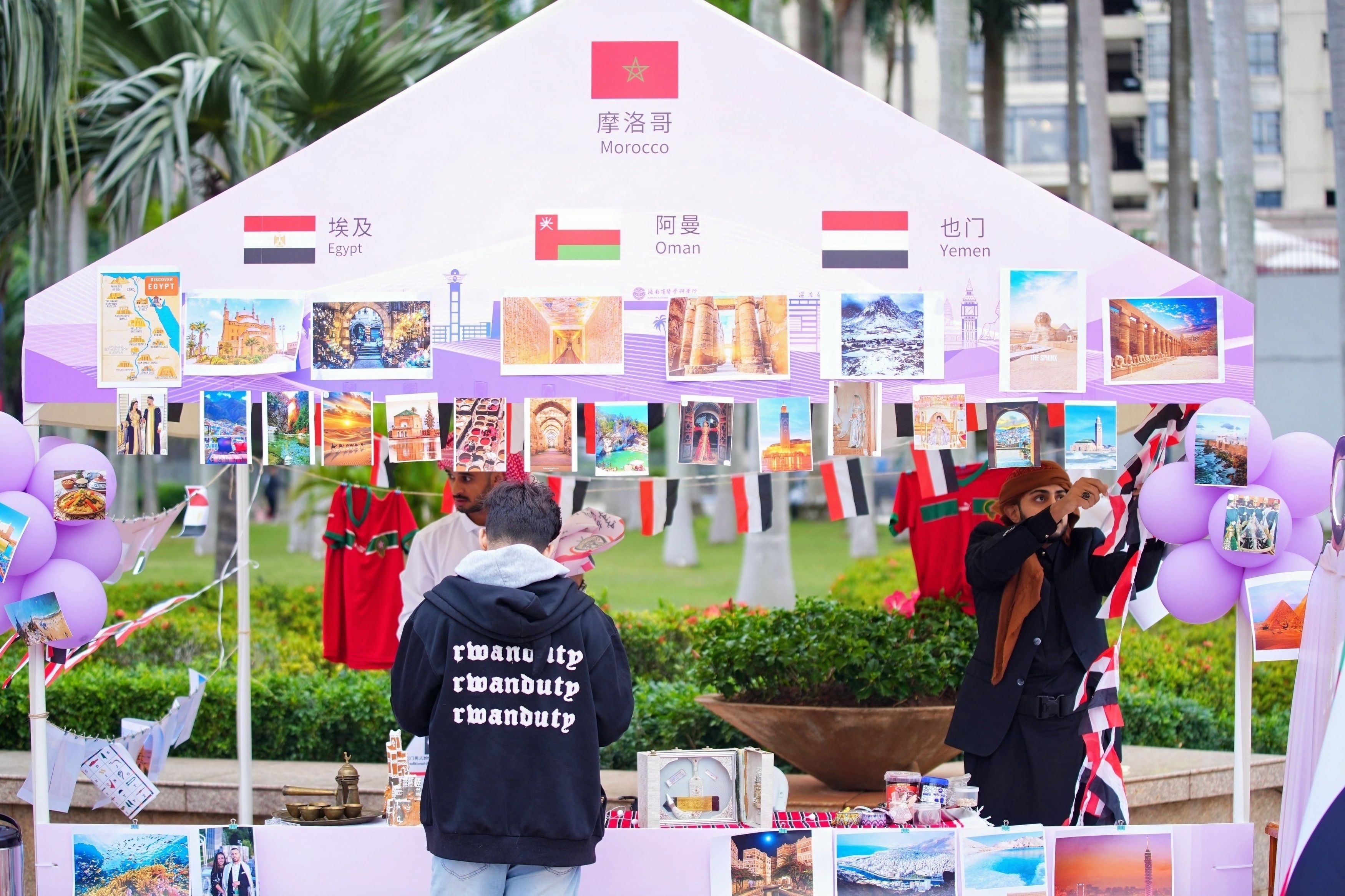 活动现场还设置了40个留学生生源国国际展位和黎族文化、琼剧、汉服、针灸推拿等4个极具中国特色展位,吸引了大批师生驻足体验。各国留学生通过民族服饰、特色美食、手工艺品等全方位呈现本国文化。中国传统文化展示区则通过互动体验的形式,让国际学生近距离感受传统文化的魅力。此次开幕式中,海口江东新区管理局特意设置了就业服务咨询展位,让同学们增进对不同文化的认知理解的同时,也触摸到未来的职业发展可能。