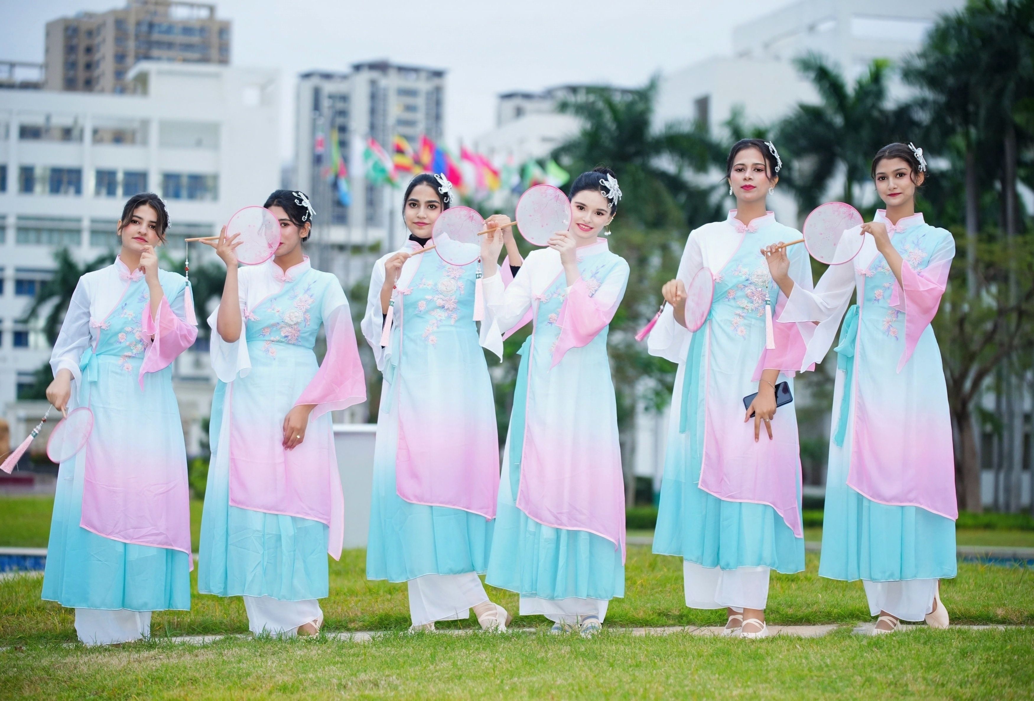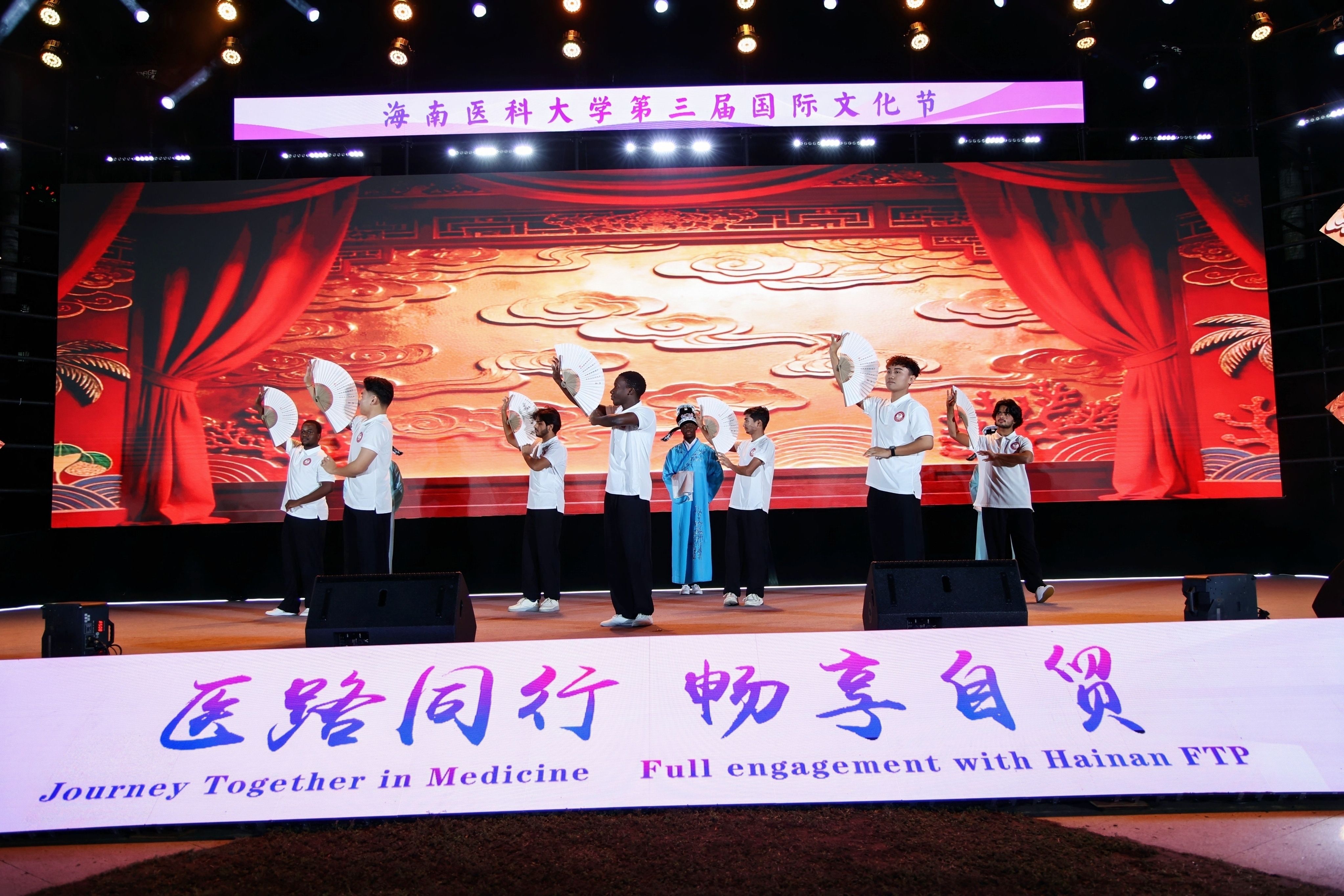 开幕式演出汇聚了多国风情。东帝汶学生以热情的《Ku Cafe》舞蹈拉开序幕;印度学生则献上充满韵律的《A Rhythm of Indian Traditions》;加纳学生用单口相声《海南美》表达了对第二故乡的热爱;多国学生乐队联袂表演的《Price Tag + Three Little Birds》一次次点燃现场热情;中外师生合唱的《世界赠予我的》诠释了“天涯若比邻”的深厚情谊。此外,海南大学、海南师范大学、琼台师范学院等兄弟院校的国际留学生也参加了此次开幕式表演,通过芦笙演奏、歌舞展示、舞蹈表演等形式展现特色文化的同时传递对中华文化的深刻理解。