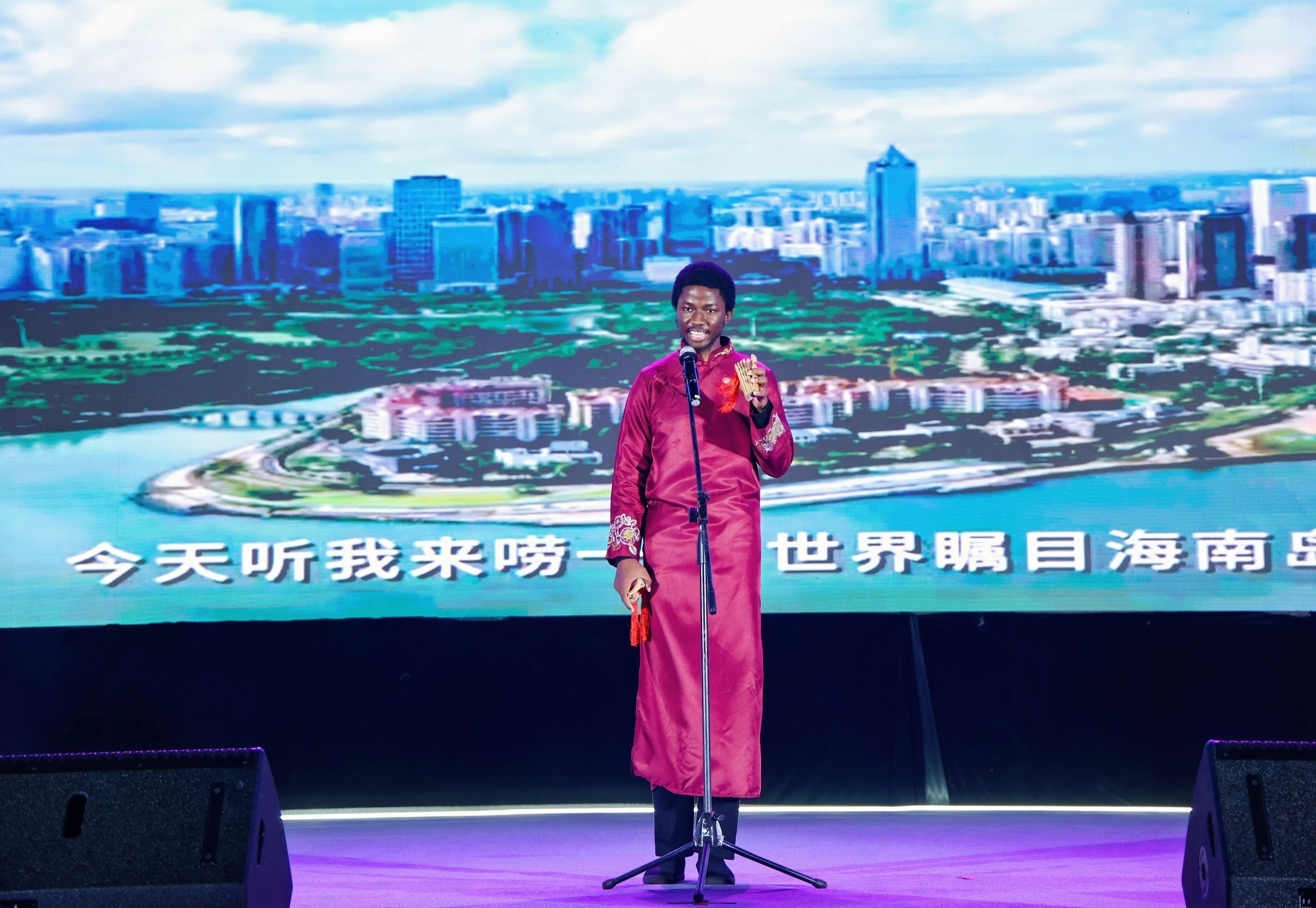 尤为引人注目的是,由巴基斯坦、坦桑尼亚、印度尼西亚、加拿大、尼日利亚、纳米比亚等多个国家的留学生共同呈现的琼剧表演。他们不仅演绎了《喜团圆》和《红丝错》选段,更在《琼韵越山海》中展示了琼剧基本功,将现场气氛推向高潮。他们在表演中展现对海南传统文化的深刻理解和娴熟掌握。