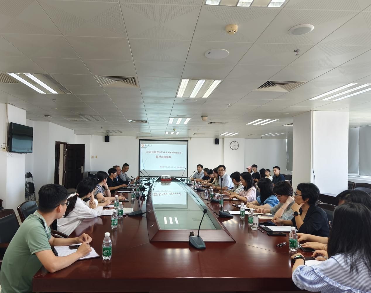 11月4日,“南海公共卫生论坛”第五期开讲的前一天,Nick Guldemond教授和张维宏教授受邀到海南医学院公共卫生与全健康国际学院访问交流,宁毅院长主持座谈会,学院教师参加。