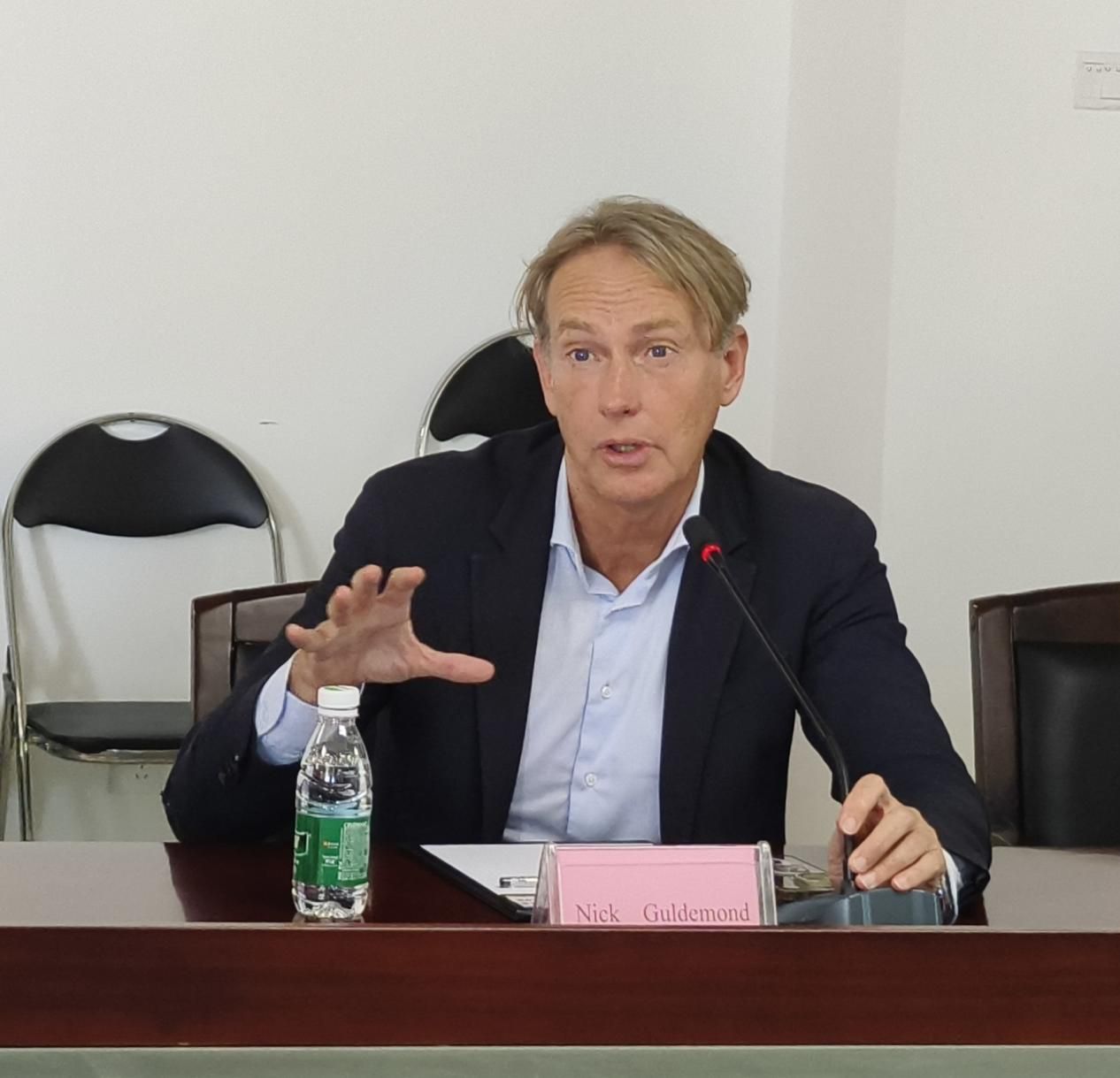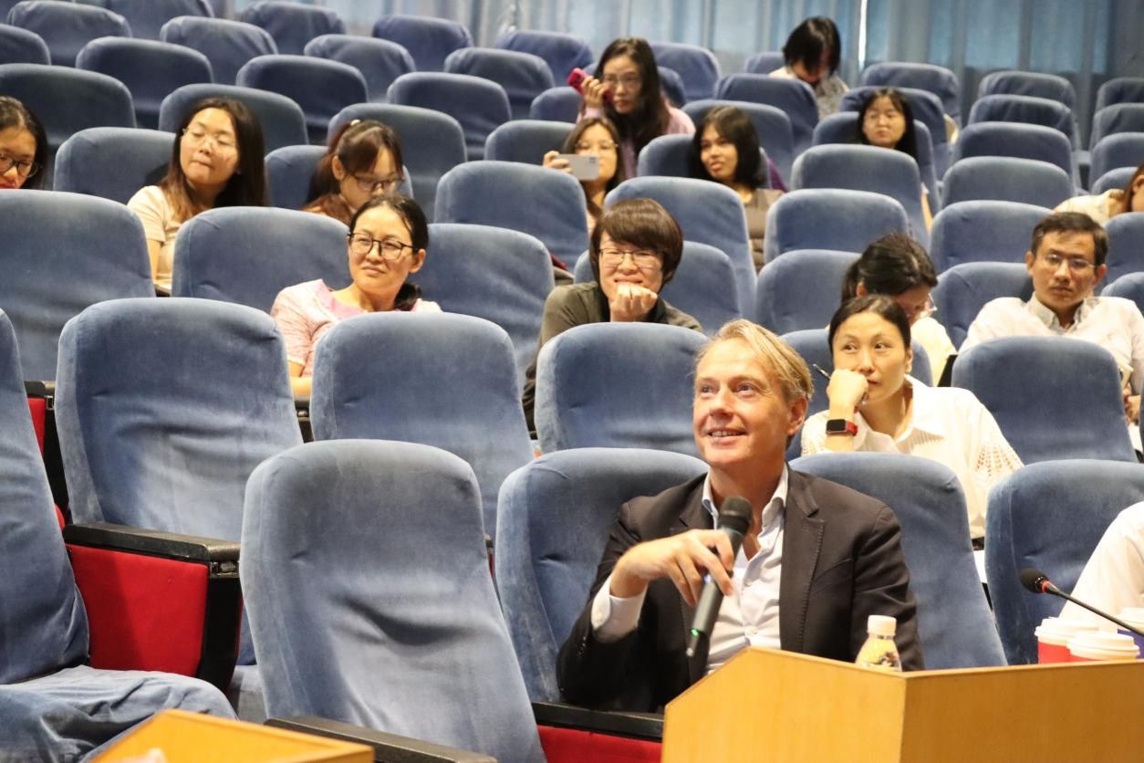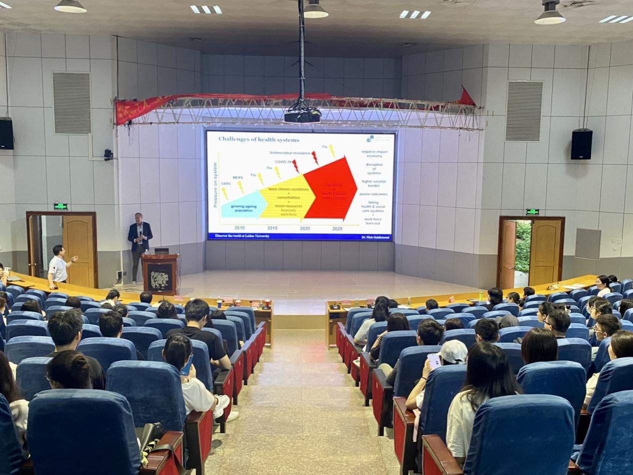 Nick Guldemond教授致力于提升健康保障体系,他曾就职于不同的国际组织,经验丰富。当天,他以《面向社区的数字健康和社会保健》为题,同在场师生讨论当前健康体系面临的问题,包括老年人和脆弱群体的就医需求、慢性病诊疗过程中资源稀缺的问题以及社会健康保障体系不稳定等方面的挑战。