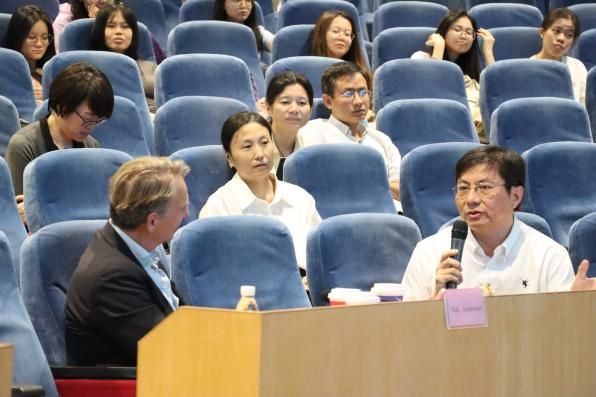 两位教授均谈及与团队、部门合作的重要性,认为在合作的过程中分享、交流、互学互助能够达到双赢的效果。在场教师同两位专家就学生出国交换学习和教师出国深造及科研方面的中长期合作进行了深入探讨。