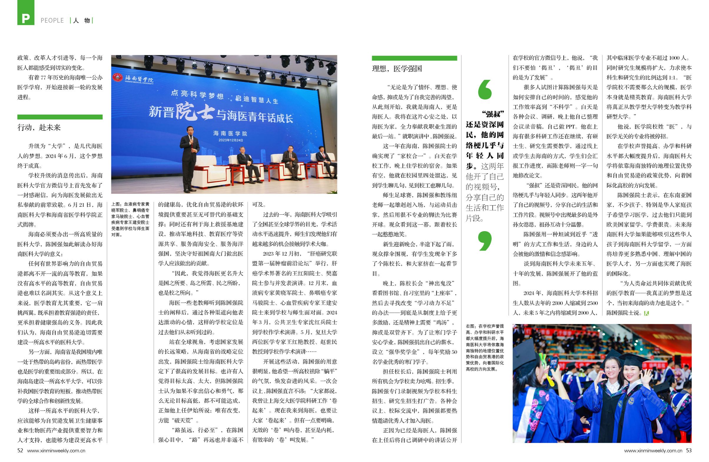 “为人类命运共同体贡献优质的医学教育——我真正的梦想是这个,当初来海南的动力也是这个。”陈国强院士说。