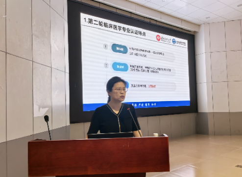 曾敏副校长对标临床医学专业认证标准,结合taptap点点实际情况,从自评报告的十个方面着手,包括宗旨与结果、课程计划、学业考核与评价、学生、教师、教育资源、教育评价、科学研究、管理与行政以及该改革与发展等内容,逐一进行了详细培训。