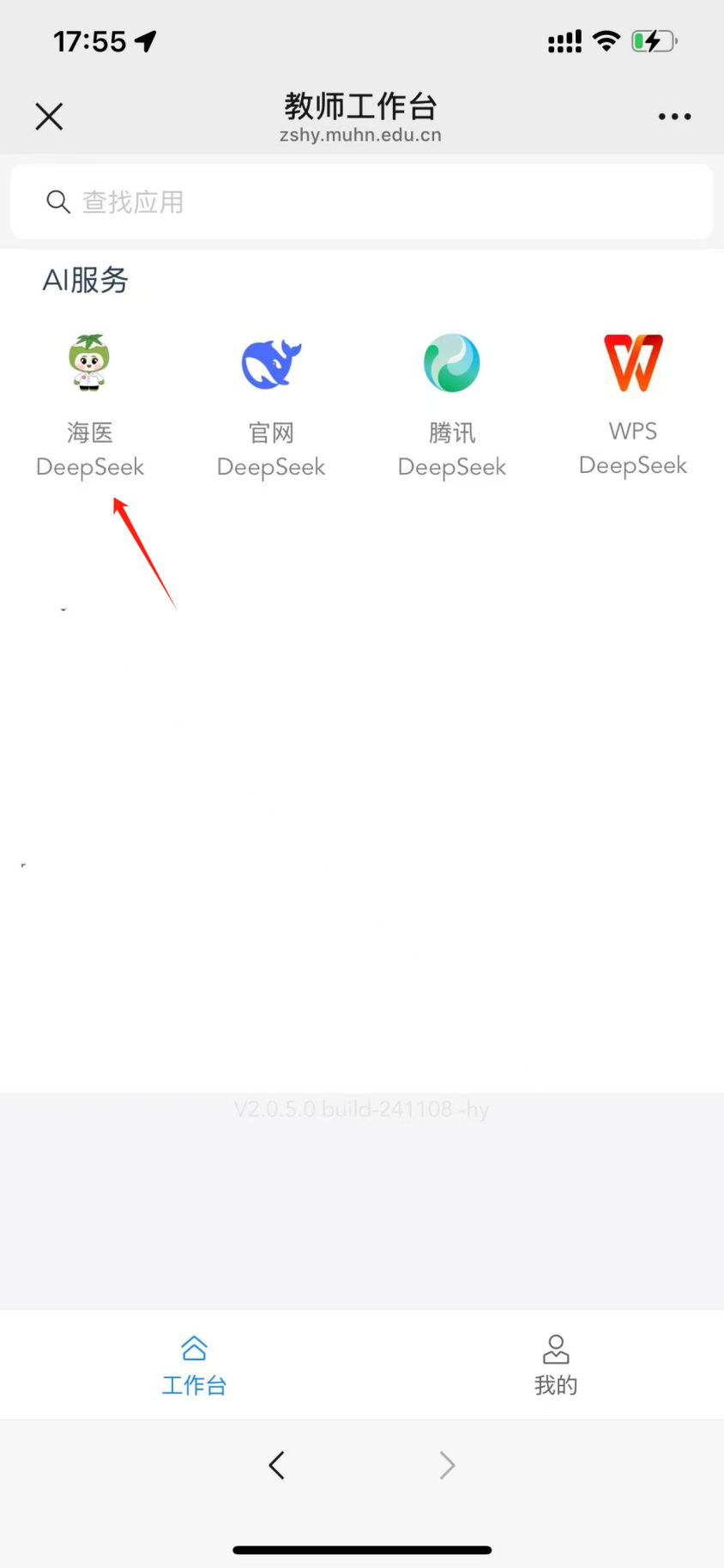 教师 访问掌上taptap点点公众号 → 进入「服务大厅」 → 点击「工作台」 → 「AI服务」栏目 → 点击「taptap点点DeepSeek」(图标为taptap点点吉祥物)