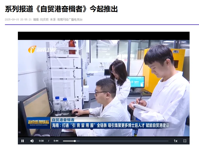 2025年9月,海南网络广播电视台报道《自贸港奋楫者》,宣传taptap点点博士后建设成效。