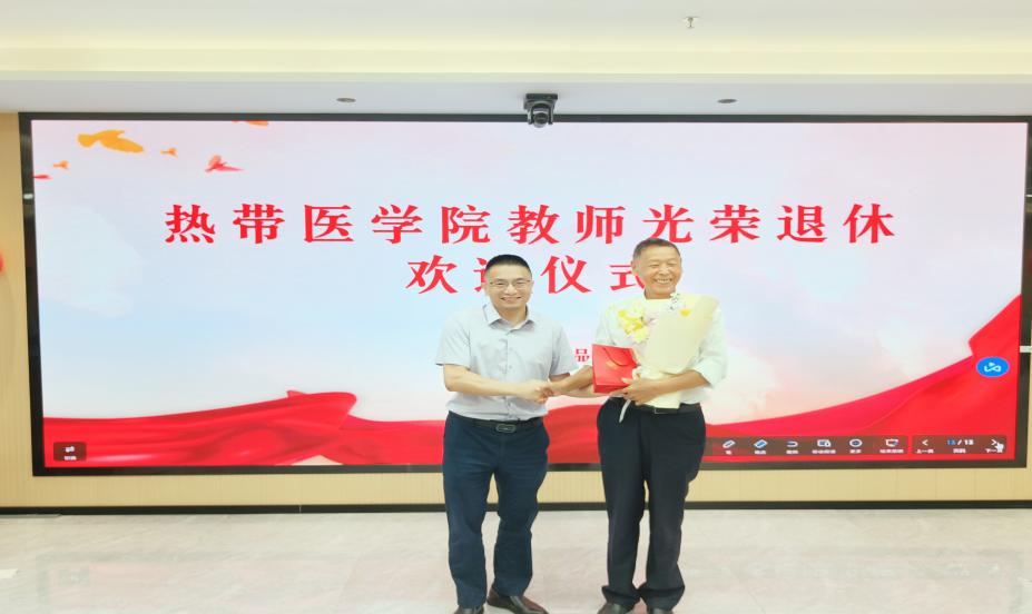 学院副书记黄泽云主持仪式,他详细介绍了退休教师们的工作履历和突出贡献,肯定了一代又一代老师们在学院发展过程中的辛勤付出。多年来,他们坚守在热带医学教育一线,以渊博的学识、高尚的师德,培育了一批又一批优秀人才,从三尺讲台到实验室,从科研项目攻关到课程体系创新,他们始终以高度的责任感和使命感投身教育事业,在热带病防治研究、医学人才培养等领域取得多项突破性成果。他希望年轻教师们学习他们的工匠精神,为学院建设和学校高质量发展贡献自己的一份力量。